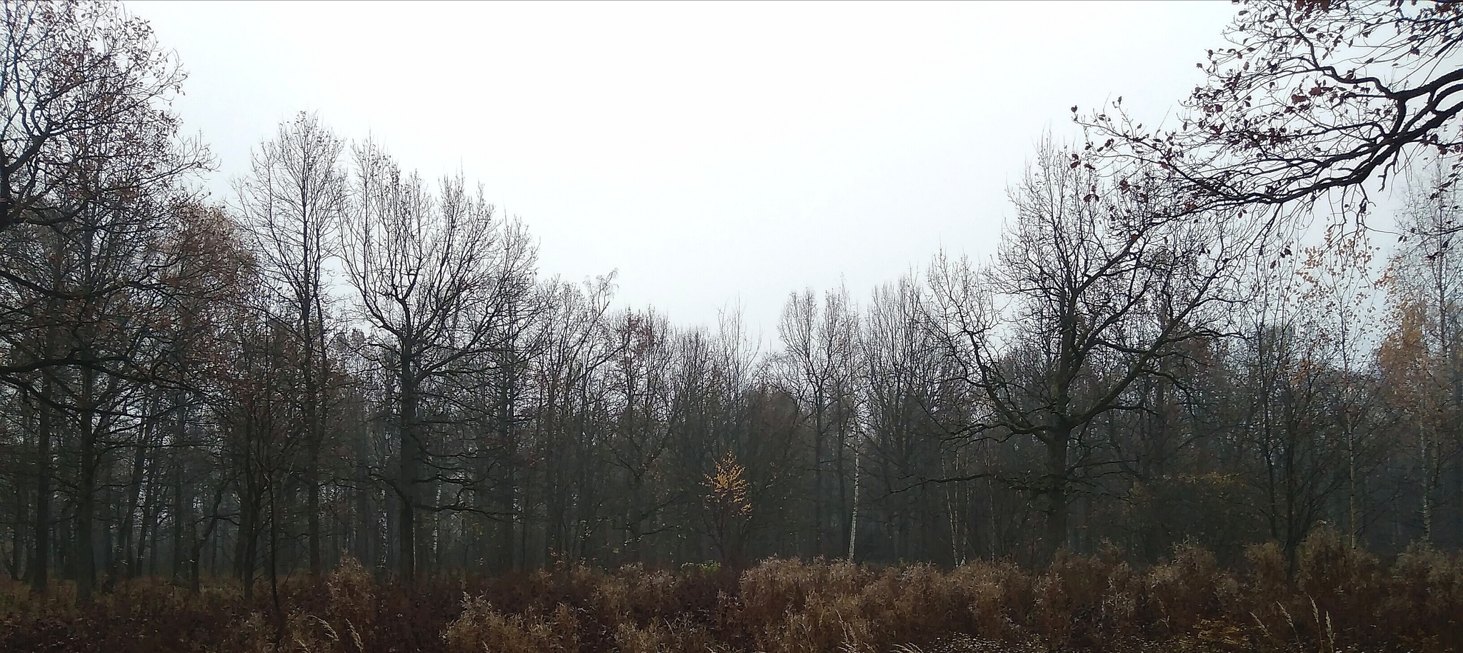 Последнее деревце с листьями в нашем облетевшем лесу.