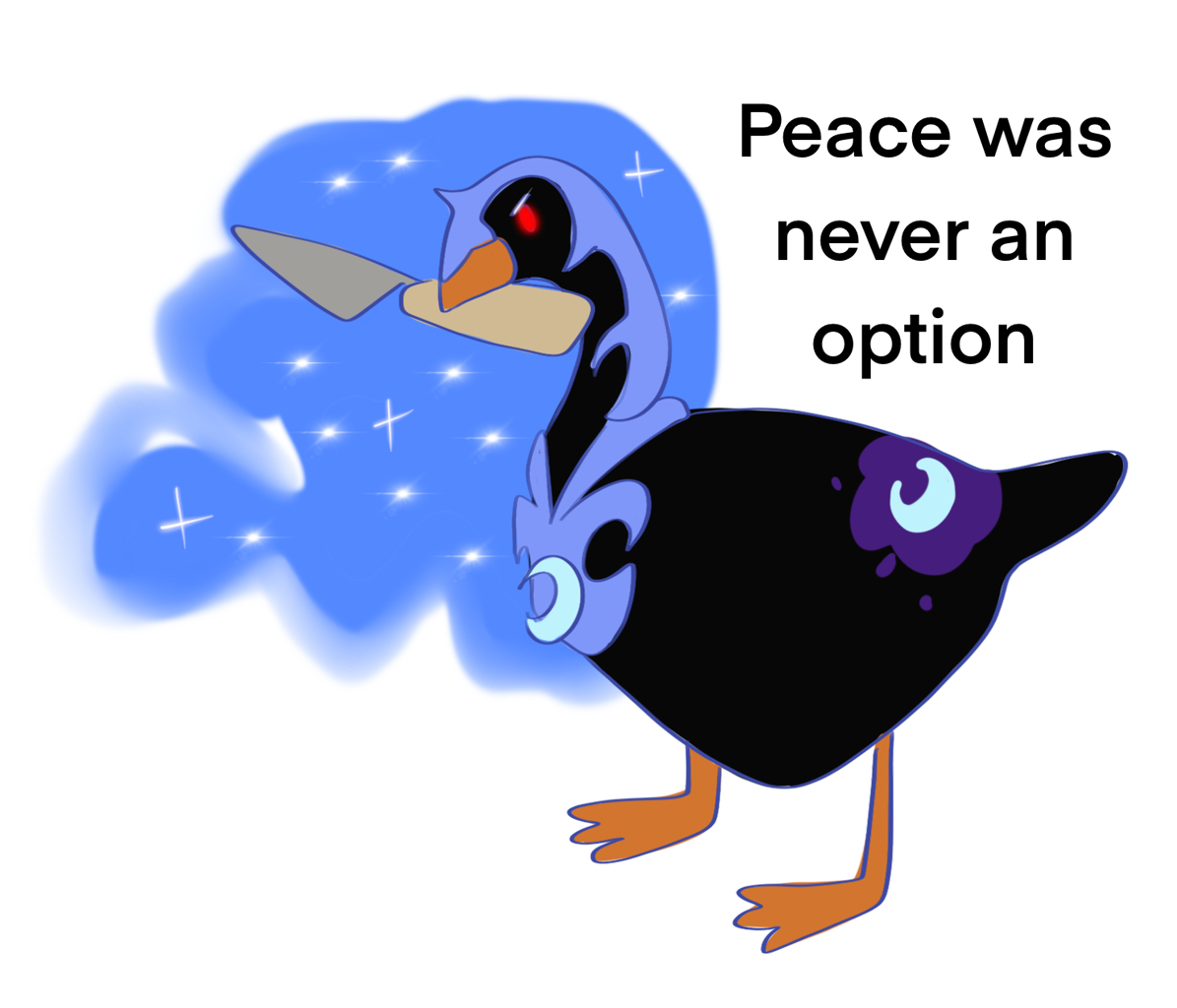 Маленький Пиппин боится гусей, потому что они все время преследовали его, когда он был маленьким. Не удивляйтесь, гуси могут быть довольно злобными (особенно дикие гуси MLP).