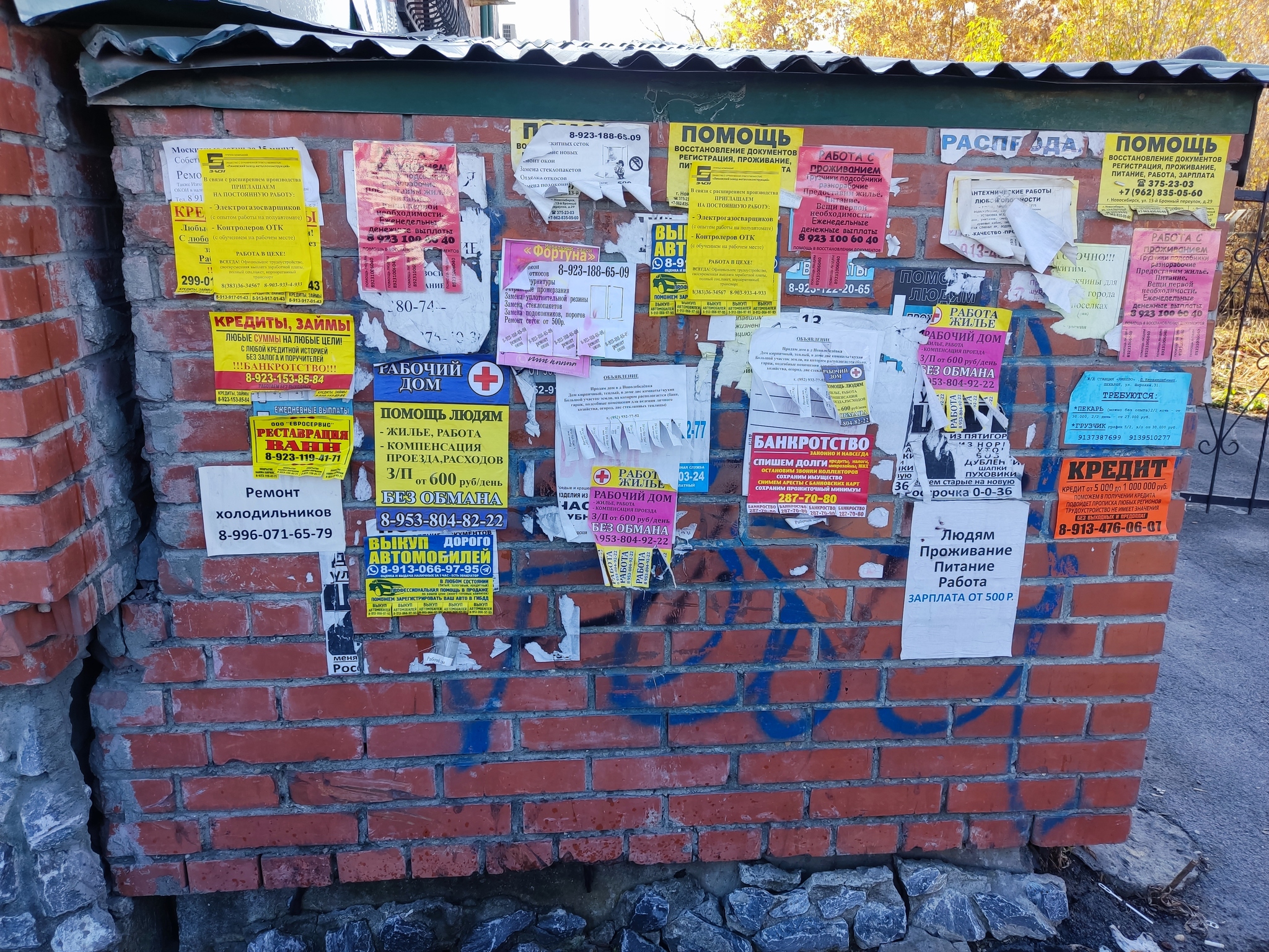 Впервые в городе, мимоходом, остановился посмотреть, где переночевать - сфотал кучку объявлений... Слегка тряхнуло. Делюсь.
