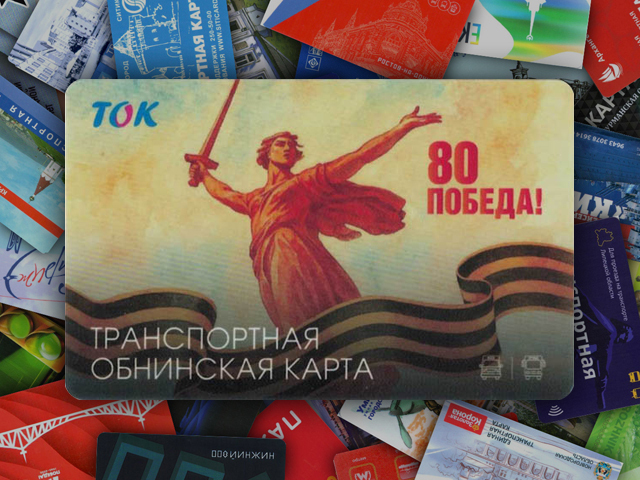 Город Обнинск тоже не обошёл стороной празднование 80-летия Победы в Великой Отечественной войне, выпустив транспортную карту "ТОК" к грядущему празднованию, 29 апреля 2025 года, с изображением на лицевой стороне карты скульптуры "Родина-Мать зовёт!", а на оборотной стороне можно увидеть знакомое всем водружение Знамени Победы.