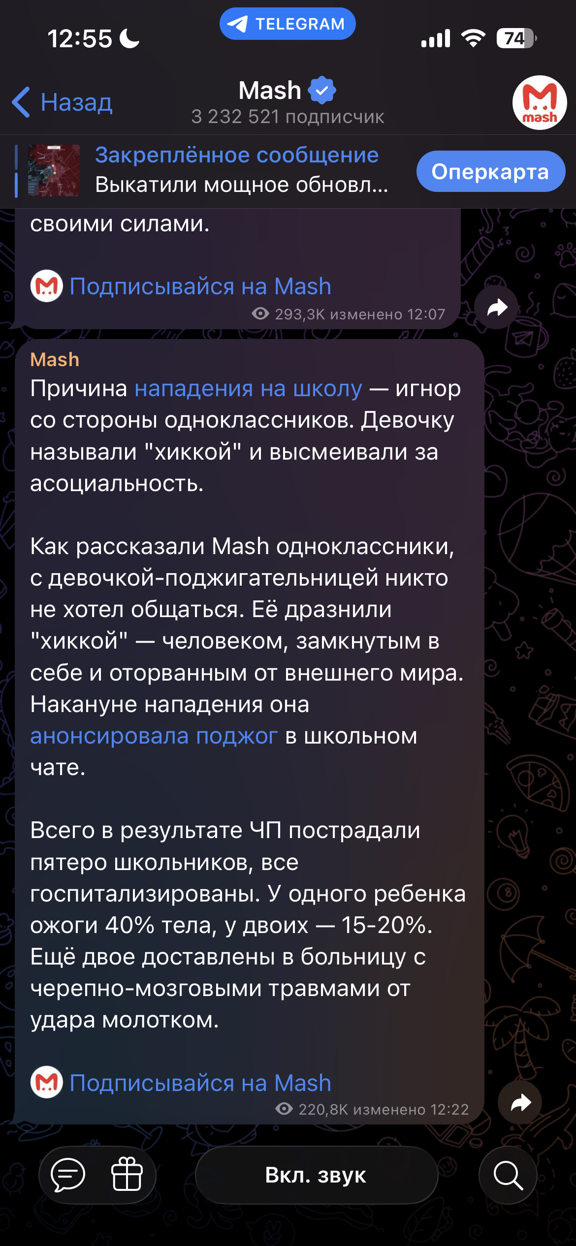 Про девочку, которая подожгла класс и школьников пишут, что булинга не было. А потом пишут, что её дразнили хиккой.