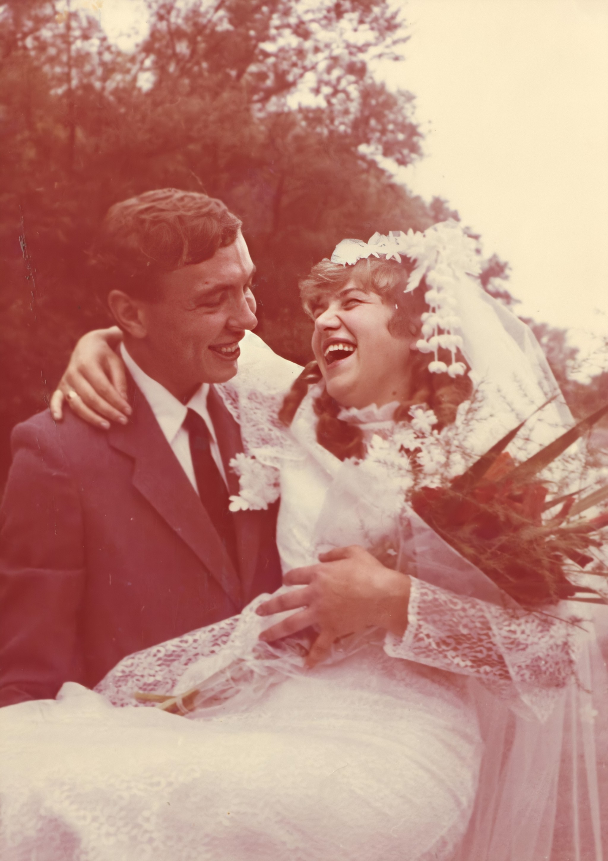 Свадьба была по тем меркам шикарная, все перепились и сыпали мелочью направо и налево, а мы, дети, собирали.