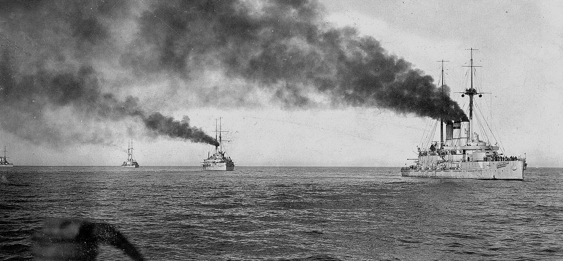 Русская эскадра — пять эскадренных броненосцев («Евстафий», «Иоанн Златоуст», «Пантелеймон», «Три Святителя», «Ростислав») и несколько кораблей помельче — возвращалась в Севастополь после рейда. Командующий, адмирал Эбергард, знал, что «Гебен» и его шустрый напарник «Бреслау» где-то рядом. Флот шел в кильватерной колонне (попросту, гуськом) в густом тумане.