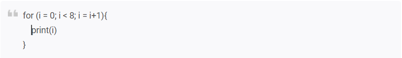 где print — как в Python, вывод текста в консоль. В каждом языке этот вывод свой. Тут выведутся числа от 0 до 7. Код можно расшифровать так: для i от 0 и пока оно меньше 8 прибавлять к i 1 и выводить его.