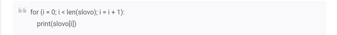 А вот как нужно было бы писать код для вывода того же слова по буквам, если бы For в Python был настоящим For: