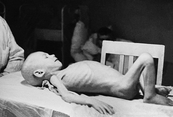 У меня к тому моменту были отморожены руки и ноги. ...Когда нянечка начала меня раздевать и сняла мою шапку, она ужаснулась — вшей у меня было больше, чем волос. Был не только голод, но и холод, поэтому шапку я не снимала где-то полгода. В те времена вода была в виде льда, поэтому помыть голову я не могла. Меня побрили наголо. ...На детей было невозможно смотреть, стоило им открыть рот, как сразу лилась кровь, выпадали зубы. Все эти дети были такими же дистрофиками, как и я. У них были пролежни, кости кровоточили. Это было ужасно. (Алексеева А. В.).
