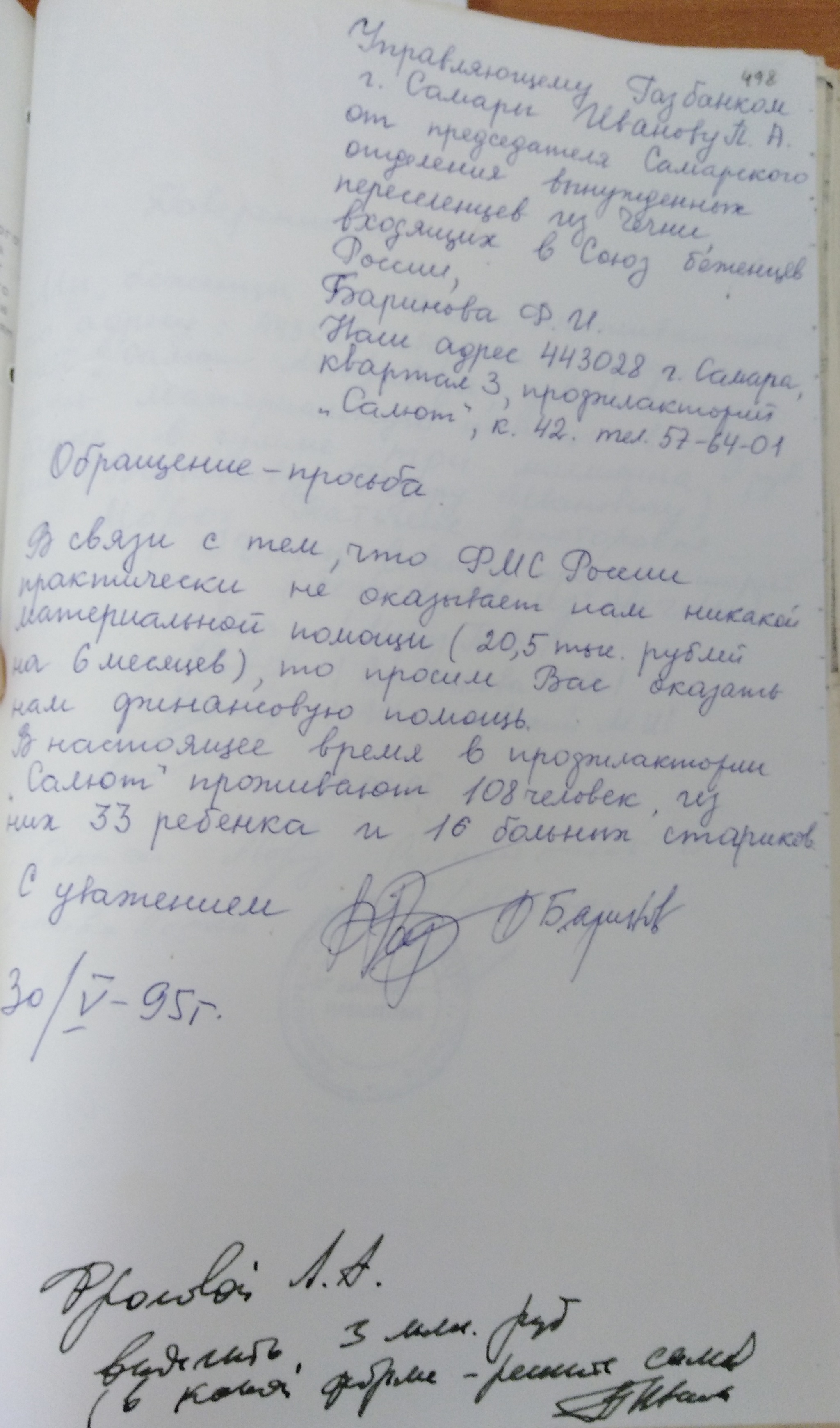 Я - историк. И работаю по специальности в одном из самарских архивов. Работаю с документами, в частности с документами коммерческих структур. Сегодня, занимаясь архивированием толстенного тома бухгалтерских документов (25-летней давности) одного банка, между страниц бесконечных квитанций и платёжек наткнулся вот на такое заявление, написанное на имя банкира в мае 1995 года. Это письменное обращение русских беженцев из Чечни, в которой в тот момент в самом разгаре была война. Вчитайтесь в этот документ. 108 несчастных русских беженцев, которых поселили на территории какого-то профилактория, умоляют банкира о помощи, так как государство на полгода (!!!) выделило каждому из них по 20 тысяч рублей!