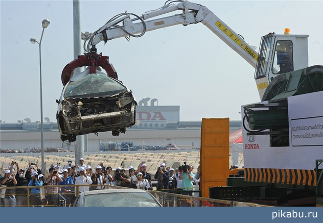 На территории завода Honda в Тайланде, во время наводнения, залило водой и грязью 1055 новых автомобилей. Компания решила их утилизировать.