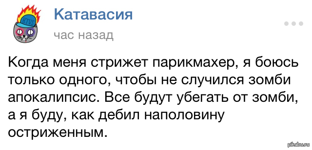 3 kyron Страсти по-апокалиптически 10 лет назад Или когда я хочу выглядеть хорошо, даже во время зомби апокалипсиса. (с) ВКонтакте Катавасия Стрижка Апокалипсис
