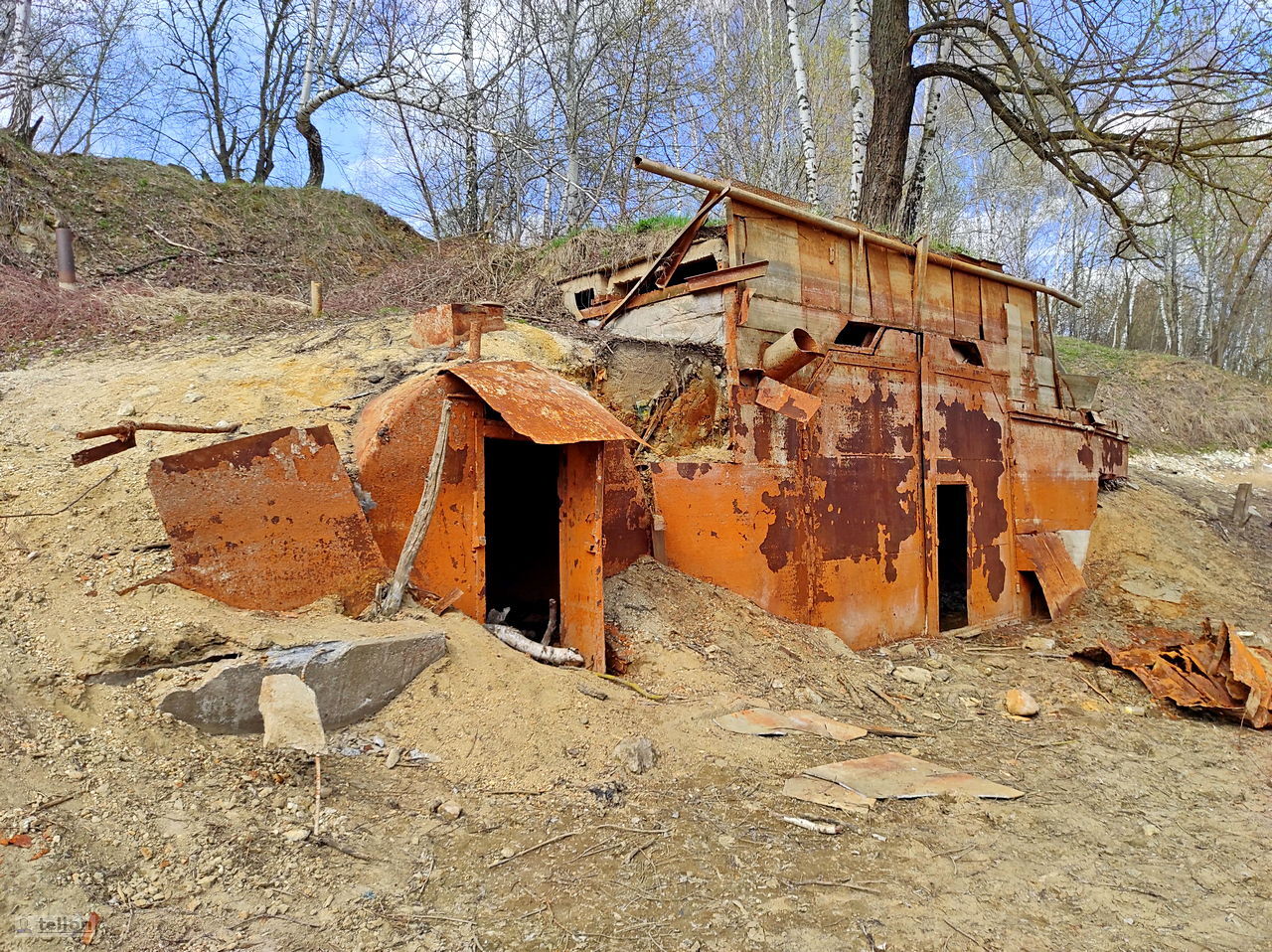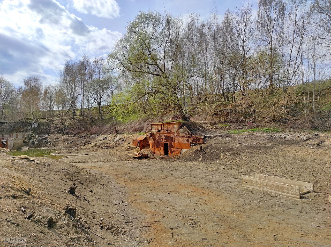 Кроме самого разреза мы получили ещё два забавных бонуса. Путь от дороги ведёт вдоль водоема, обозначенного как Рыбушкин овраг. Судя по карте, там должен был быть пруд, но мы увидели филиал Мордора: