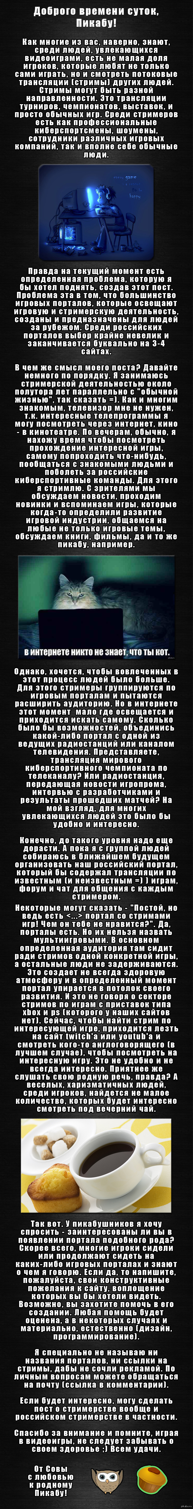 4 elecl 11 лет назад Стримы и мы немного о стримерстве, порталах и идее (длиннопост) [моё] Длиннопост Стрим Игры Компьютер Интернет