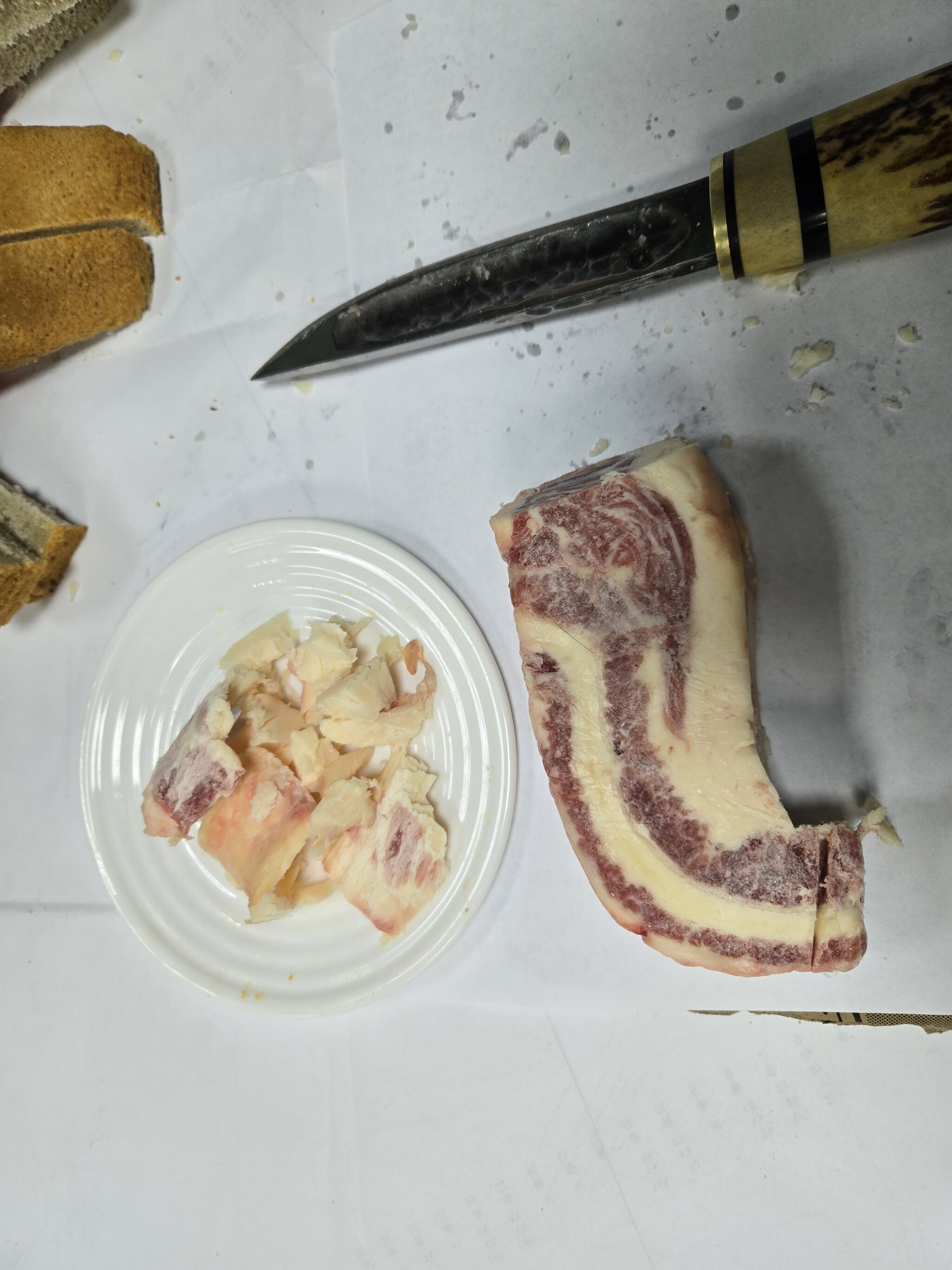 Тут только с балкона занесли, а на балконе минус 40 - так что толком не строгается ещё, скорее крошится.