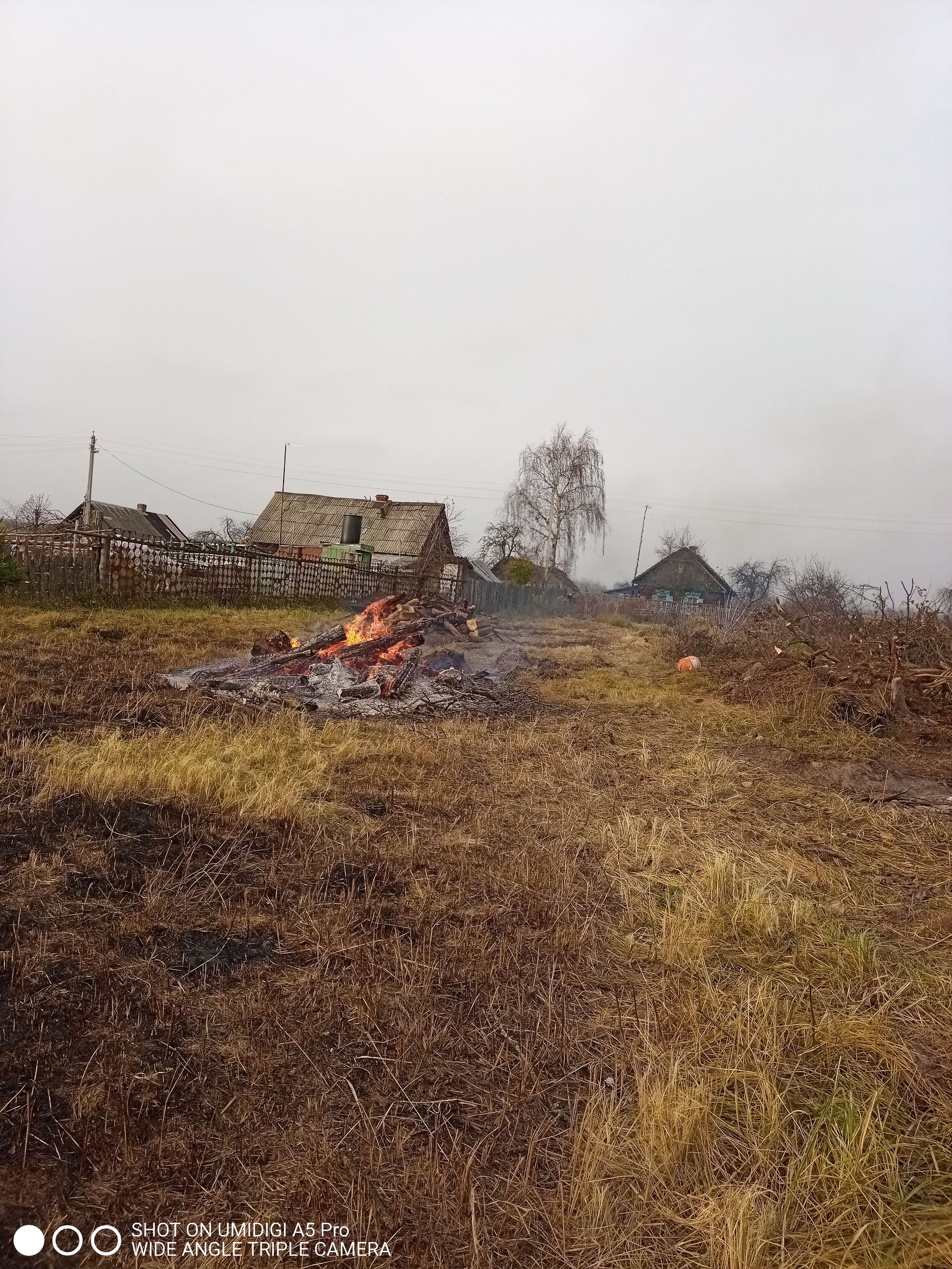 Участок после был скошен, частично выжжена трава. И теперь весь мусор ветки и дом надо убрать что бы можно было запроектировать дом и начать строительство.