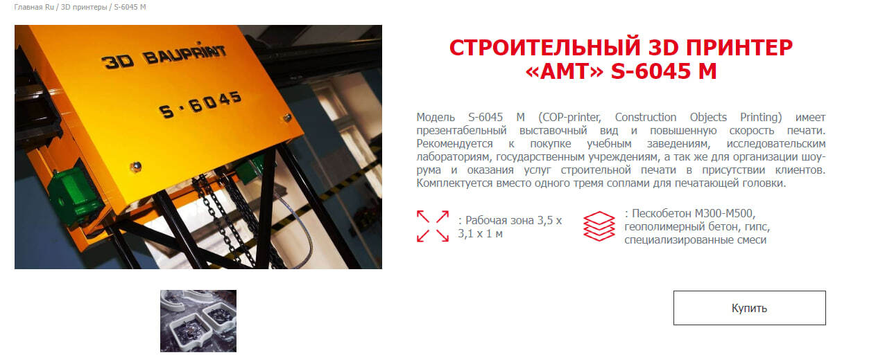 Строительный факультет купил 3D принтер отечественного производства компании АМТ из Ярославля. Как я понял, АМТ - лидер по изготовлению строительных 3D принтеров в России.