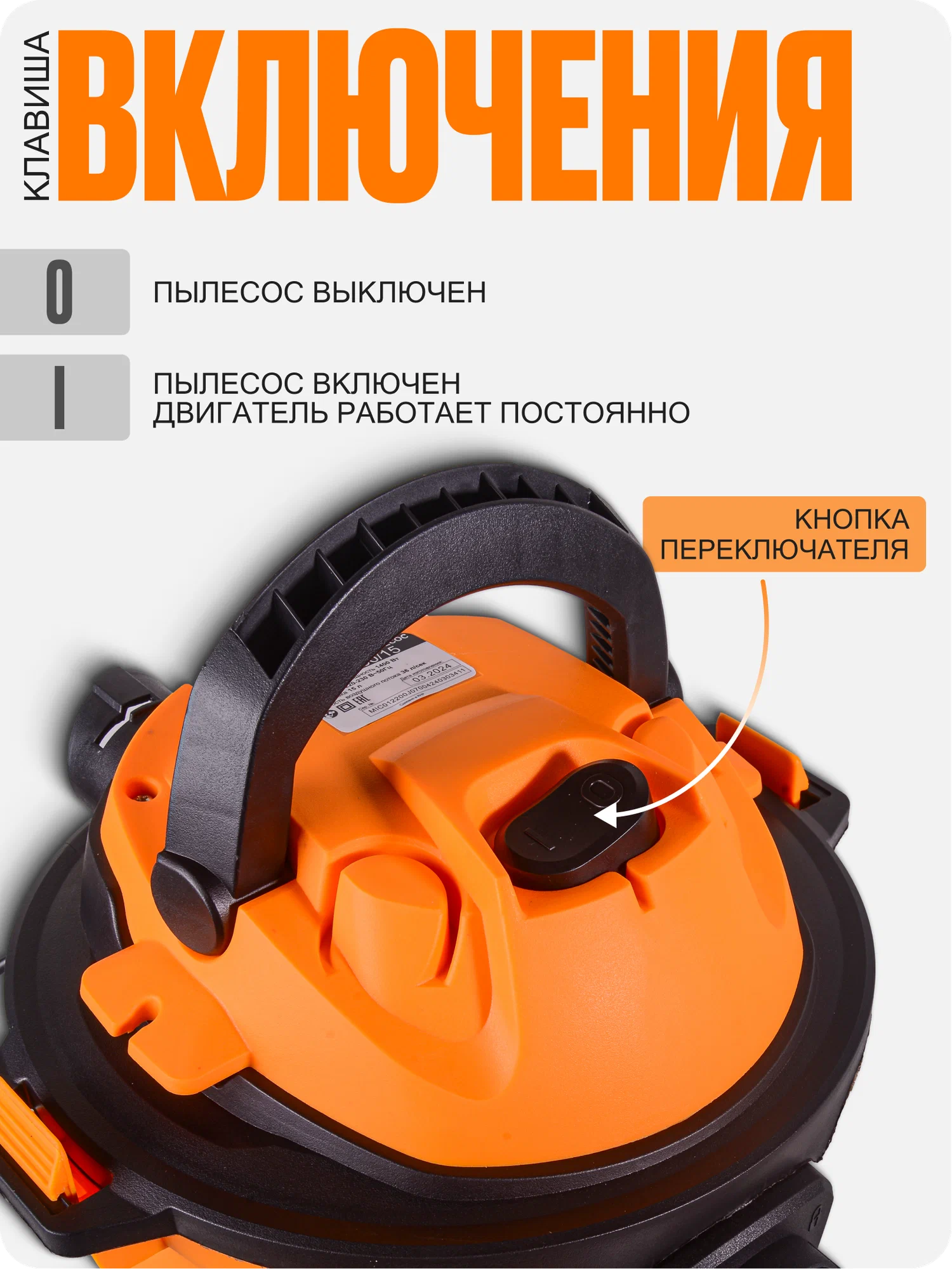 Объем бака: 15 литров — вместительность резервуара позволит собрать значительное количество строительного мусора и пыльных частиц без частых опорожнений.