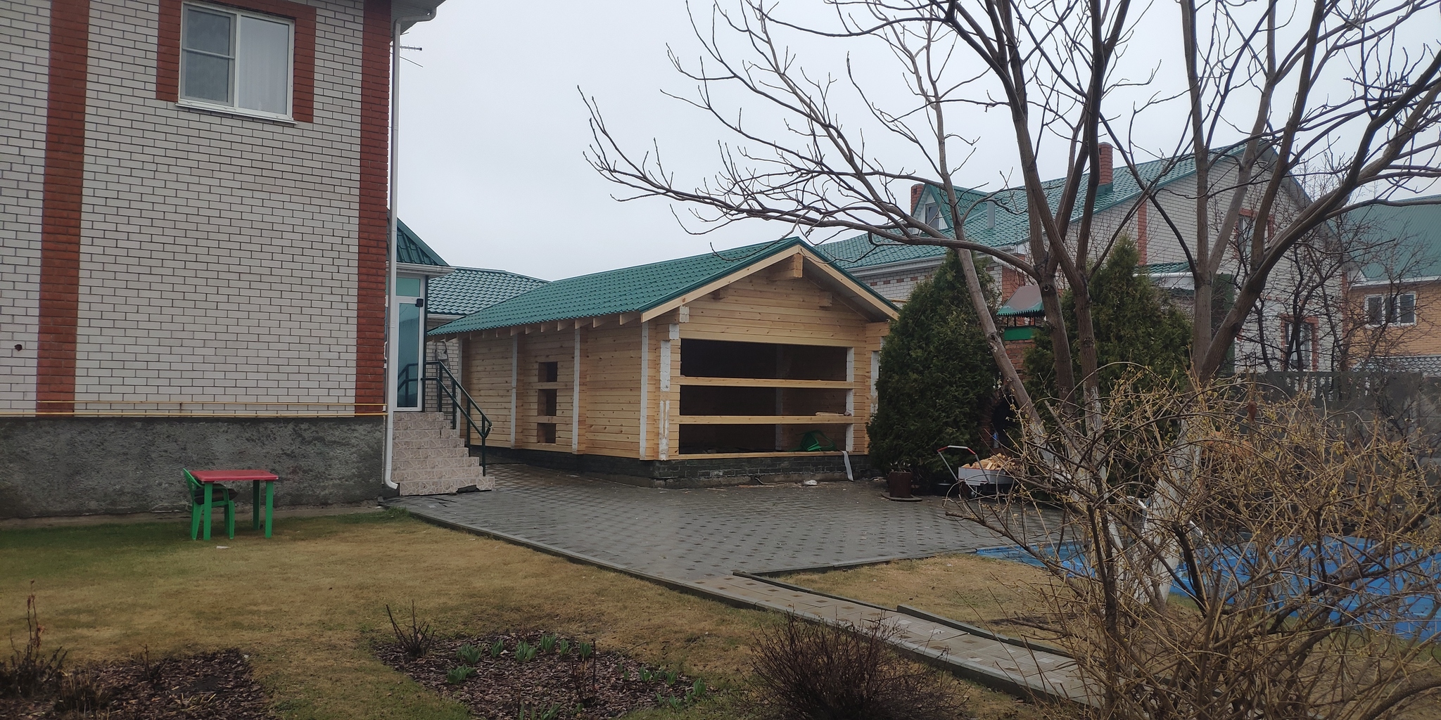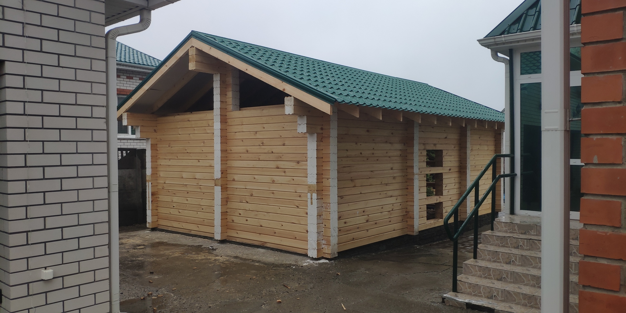 Эту баню 7х5 из профилированного бруса, мы с напарником вдвоём установили за 8 рабочих дней. Ждём усадки в течении 4-5 месяцев и приступим к внутренней отделке.
