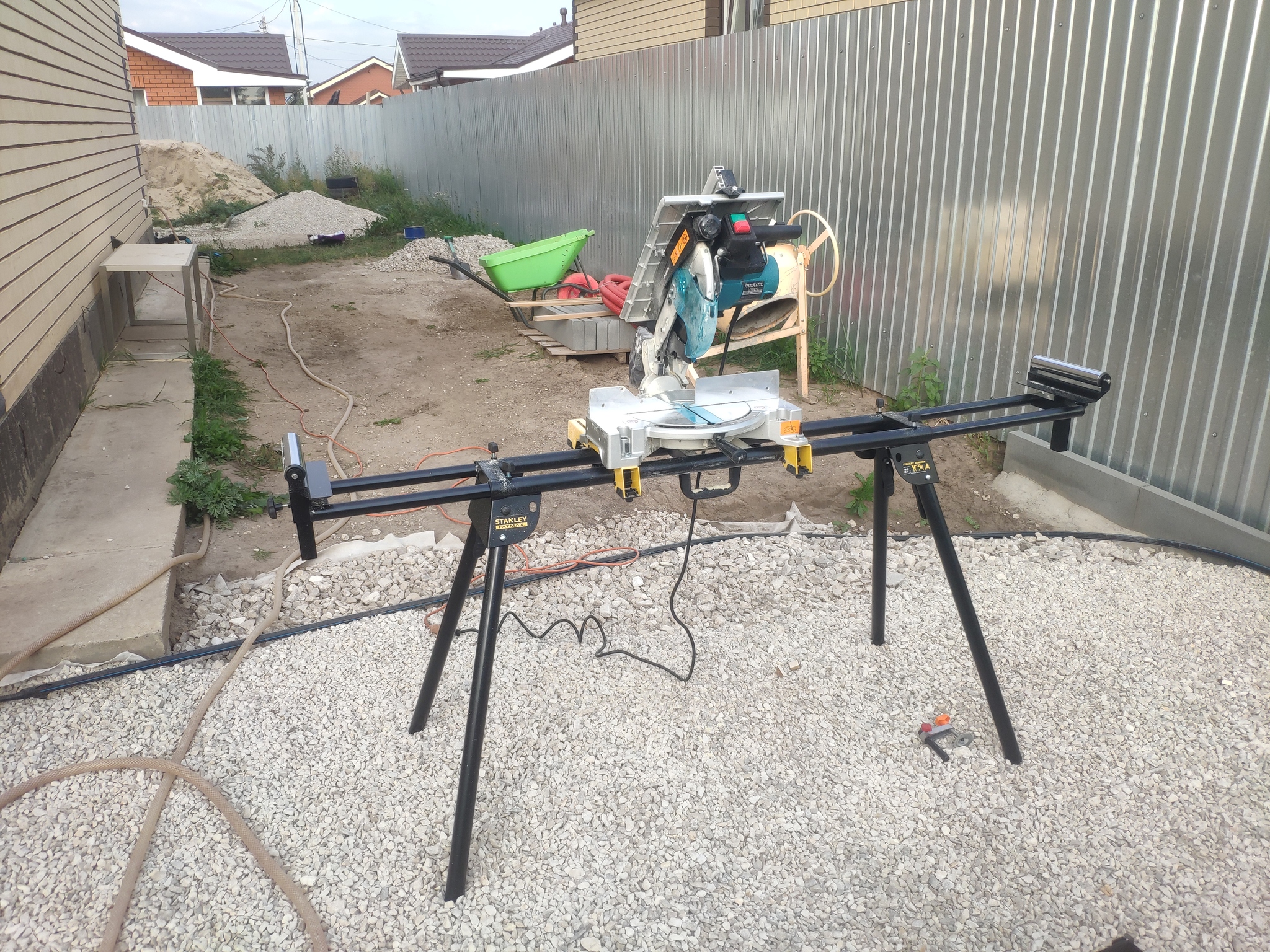 Дальше предстояло сделать обрешётку. От опалубки фундамента осталось много доски дюймовки.Но ее все равно не хватило бы,если делать нужный шаг между досками.Поэтому просто решил их располовинить и крепить с нужным шагом.Благо,что в хозяйстве есть торцовка с распиловочным столом,которая прекрасно справилась с этой задачей