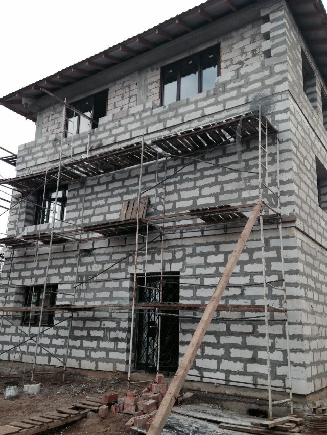 если можно, в следующем посте выложите чертеж с размерами помещений. Я более чем уверен, что в итоге жилая площадь в вашей громадине и в моем 170-квадратном доме будет примерно одинаковой. До начала стройки мы с тестем изрисовали тучу листочков, перекачали кучу программ для планировки, но как только впервые увидели нормальные готовые проекты... Выбросили все. 1) не учтена освещенность помещений 2) вентиляция тоже будет лепится абы как 3) проводка, а также связанный с ее последующей переделкой геморрой (а переделки полюбому будут, т.к. вы сто раз передумаете, где и что будет стоять). 4) теплопроводность у бетона кошмарная, отопить дом будет влетать в копеечку. 5) удобство размещения комнат тоже очень спорное. И так далее. Короче говоря, глядя на количество затраченного материала, мне просто как-то, ну не знаю, жаль, или завидно немного, что вроде как финансов хватает вот так вот вбухивать в стройку, но затраты ужасно непродуманны и очень часто необоснованны. Я себе такого позволить не смог, но решил не экономить ни на качестве, ни на запасе прочности.