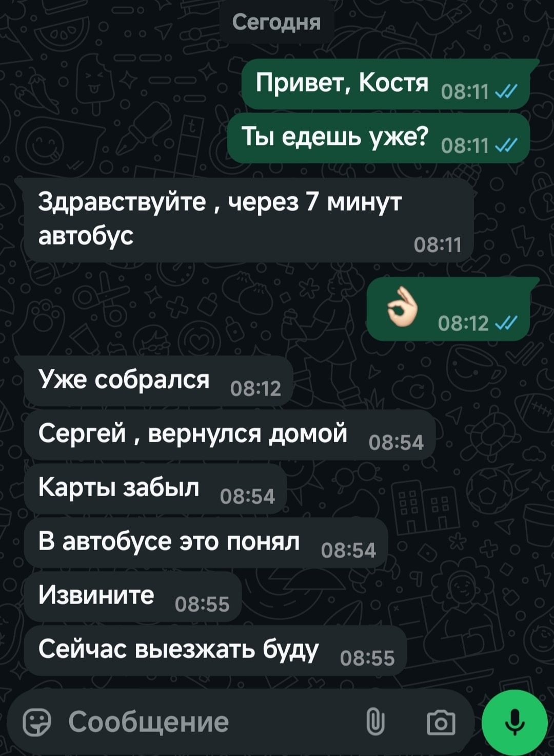 Об опозданиях и говорить нечего — я прям удивился, когда он два раза вовремя пришёл!