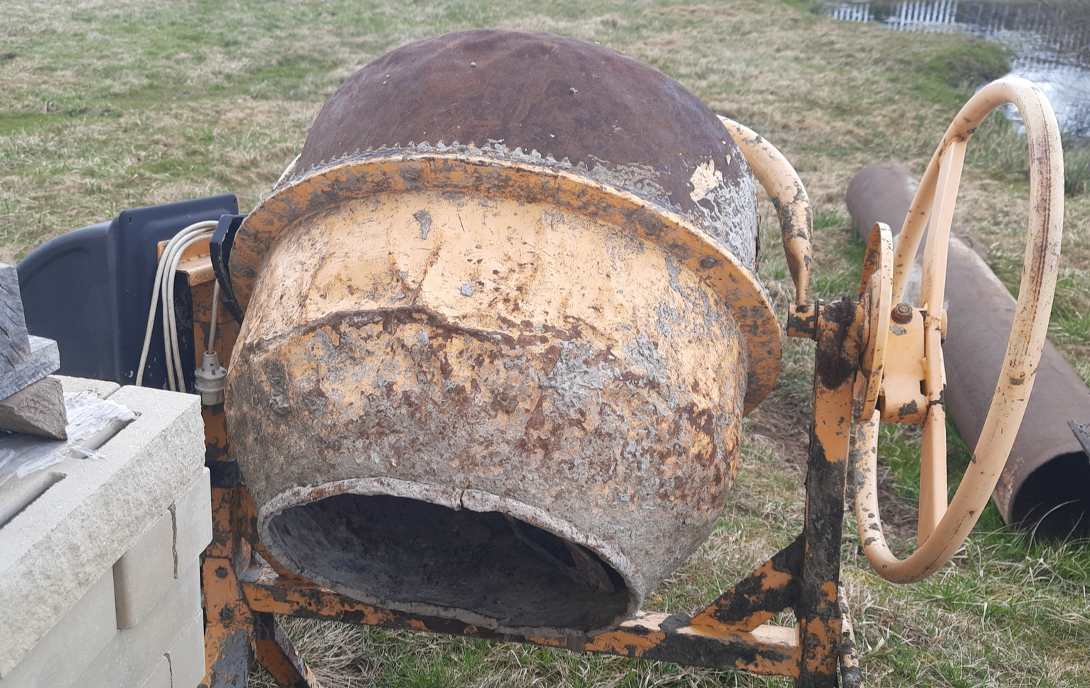 Бетономешалка. Собственно без неё не стоит и начинать. Конкретно у этого экземпляра тяжелая, но интересная судьба. А так - бетономешалка это начало начал, но нужна только если уже совсем хочется во все тяжкие - большие объемы проще заказать миксером, а вот заборчик установить, крылечко бахнуть - нужная вещь.