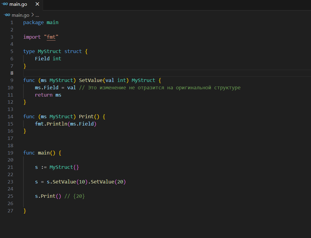 В Go методы структур могут иметь два типа приемников (receiver): по значению (копия структуры) и по указателю. Выбор между ними влияет на возможность метода изменять саму структуру и на производительность. Вот основные различия: