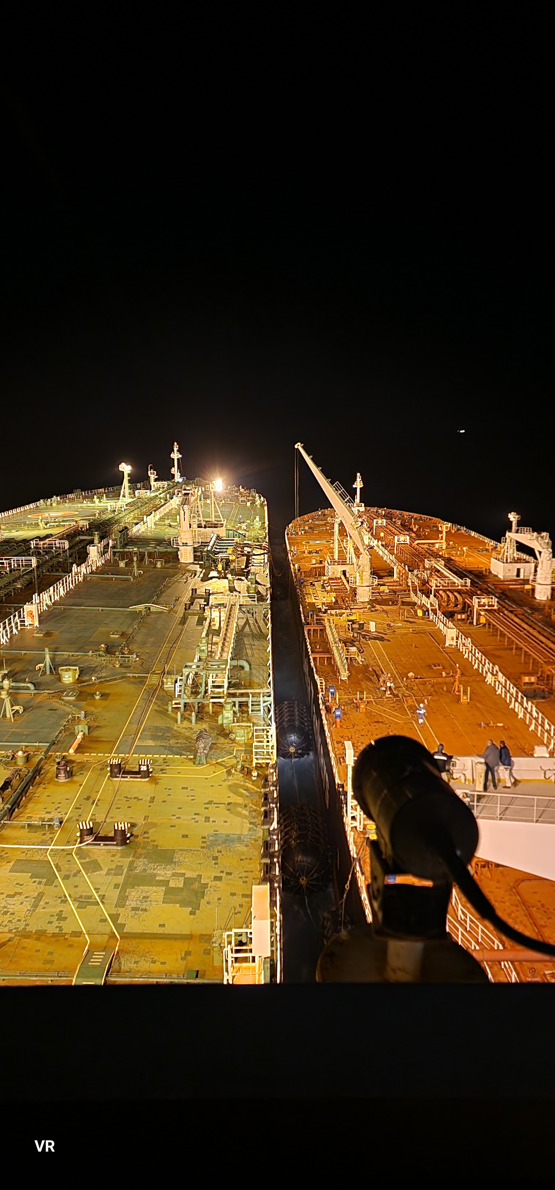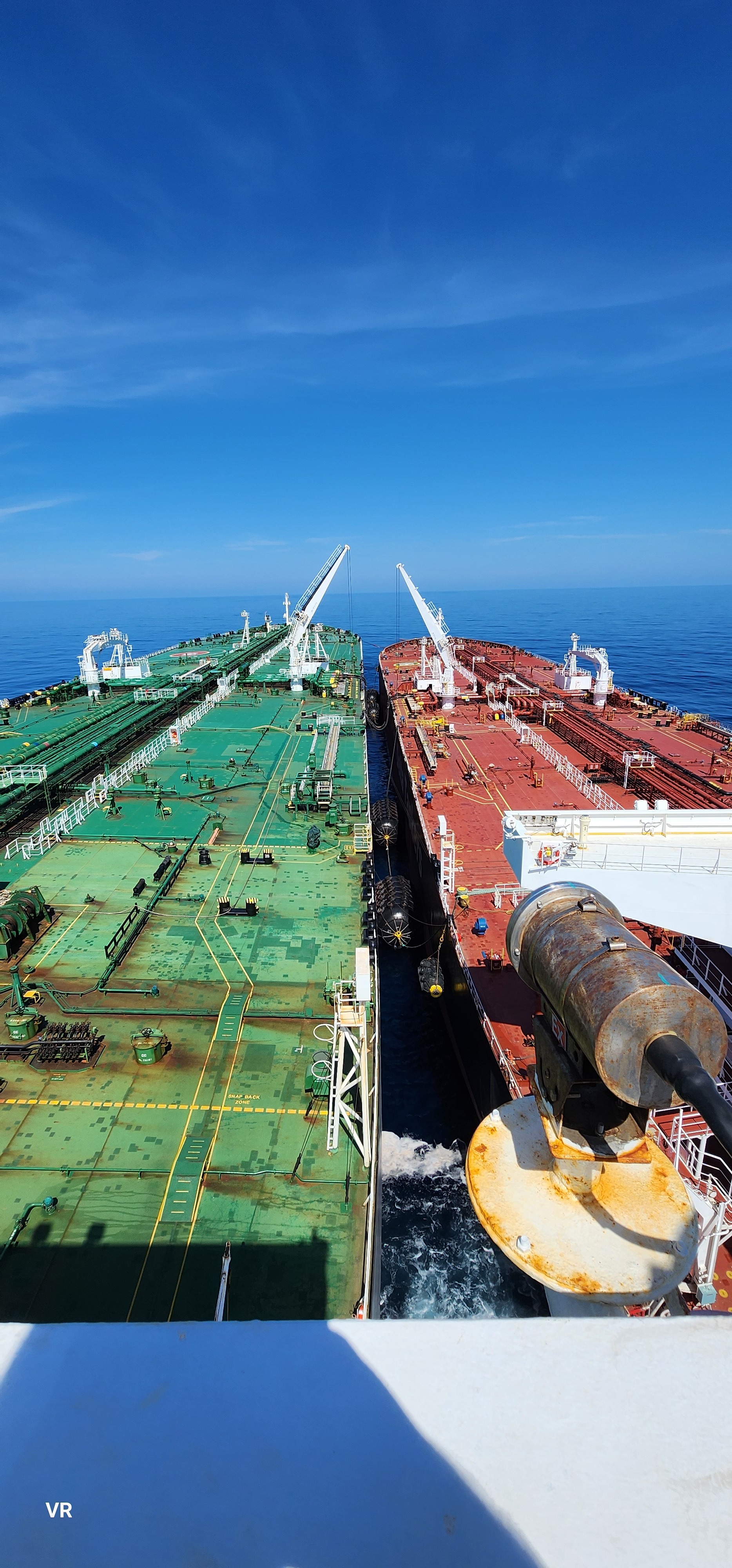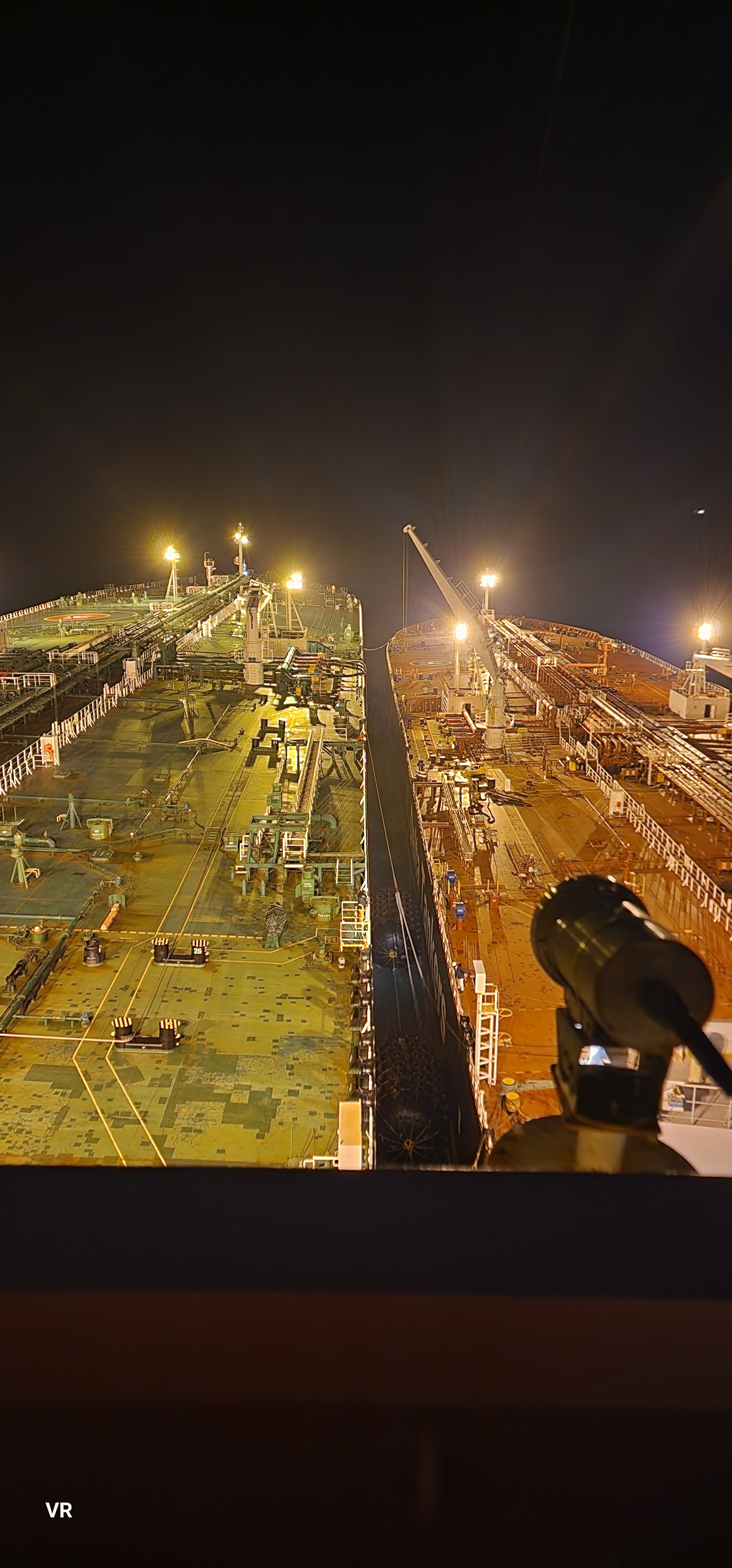 У нас было две операции судно- судно, погрузка. Под Шевроном, со своими заебами, по другому не скажешь. Все прошло хорошо, самое неприятное было швартовка, вторая, ночью. Некоторые компании это не разрешают, у нас можно. Ну, спалил я немного нервов, да и не только я. Но все удачно.