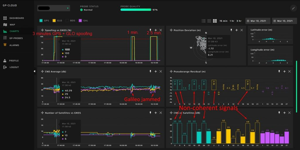 Но иногда мощность поддельного GPS-сигнала настолько высока, что он перегружает входной канал GNSS-приемника, и он уже не может воспринимать ГЛОНАСС и Beidou.