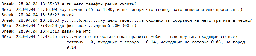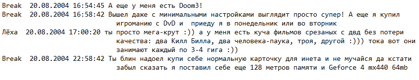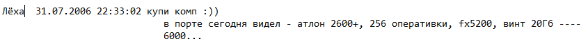 Ну и вишенка на торте - у меня сохранены все хистори из аськи тех лет. Забаные встречаются перлы: