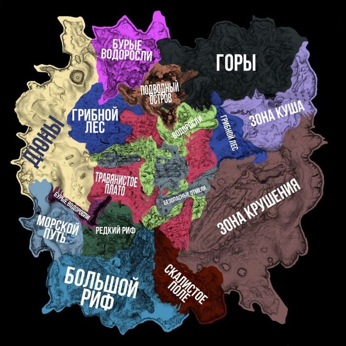 Впрочем, остальные биомы ничуть не уступают стартовому в красоте, они просто другие. Есть загадочно-таинственные, как та же подводная река, есть откровенно пугающие, как зона кровавых водорослей с её отвратным обзором и фосфорицирующими наростами, есть простенькие, но элегантные, как грибной лес, а есть откровенно инфернальные, как лавовый биом.