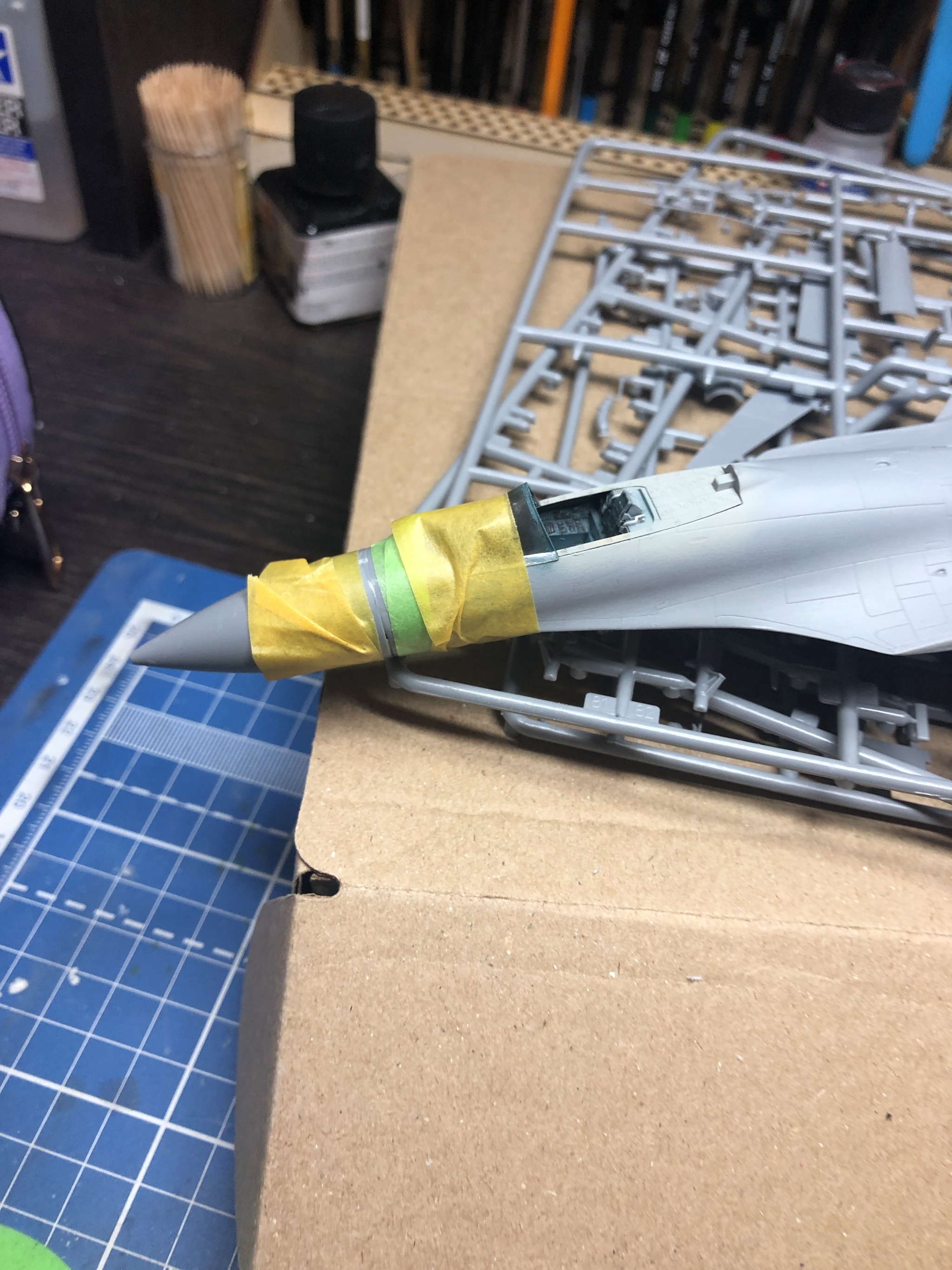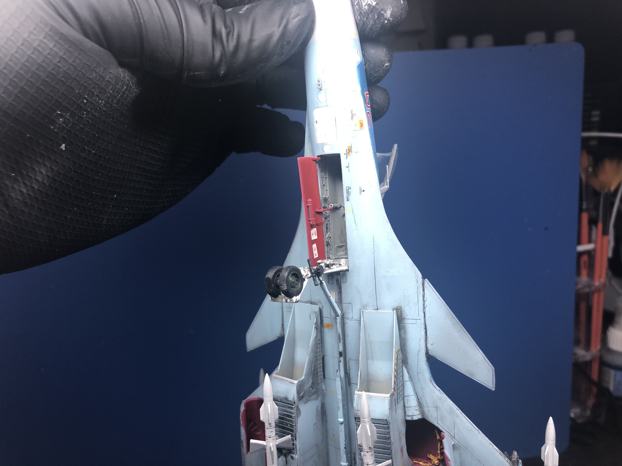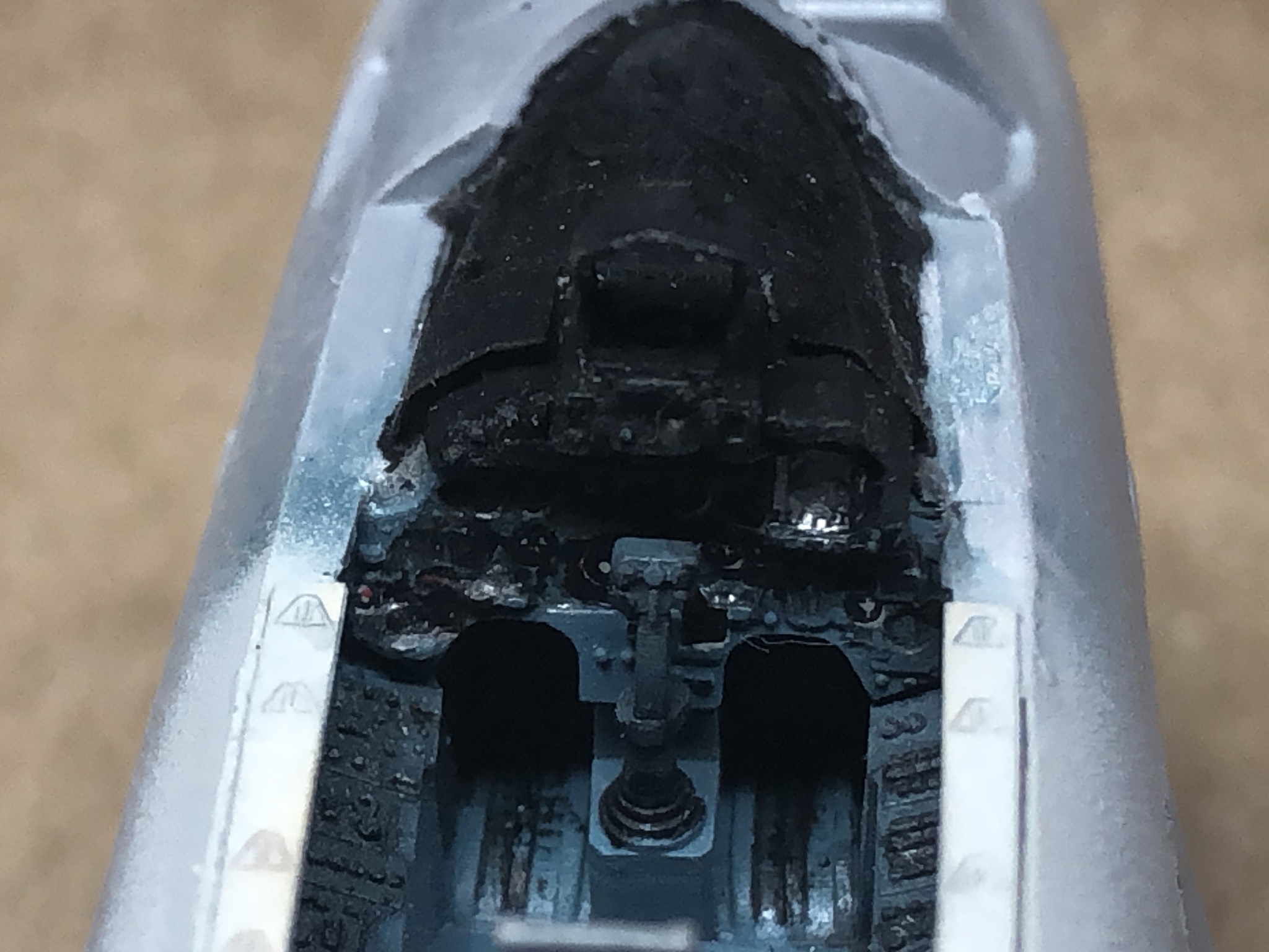 У самолётов есть такая особенность, что ниша шасси находится аккурат под ванной кокпита, и, по закону Мерфи они между собой не стыковались. Пришлось точить и очень сильно. Фактически стенки достигли толщины прозрачной пленки, что у кокпита, что у ниши. С нишами основных стоек тоже пришлось помучаться, но в итоге состыковал.