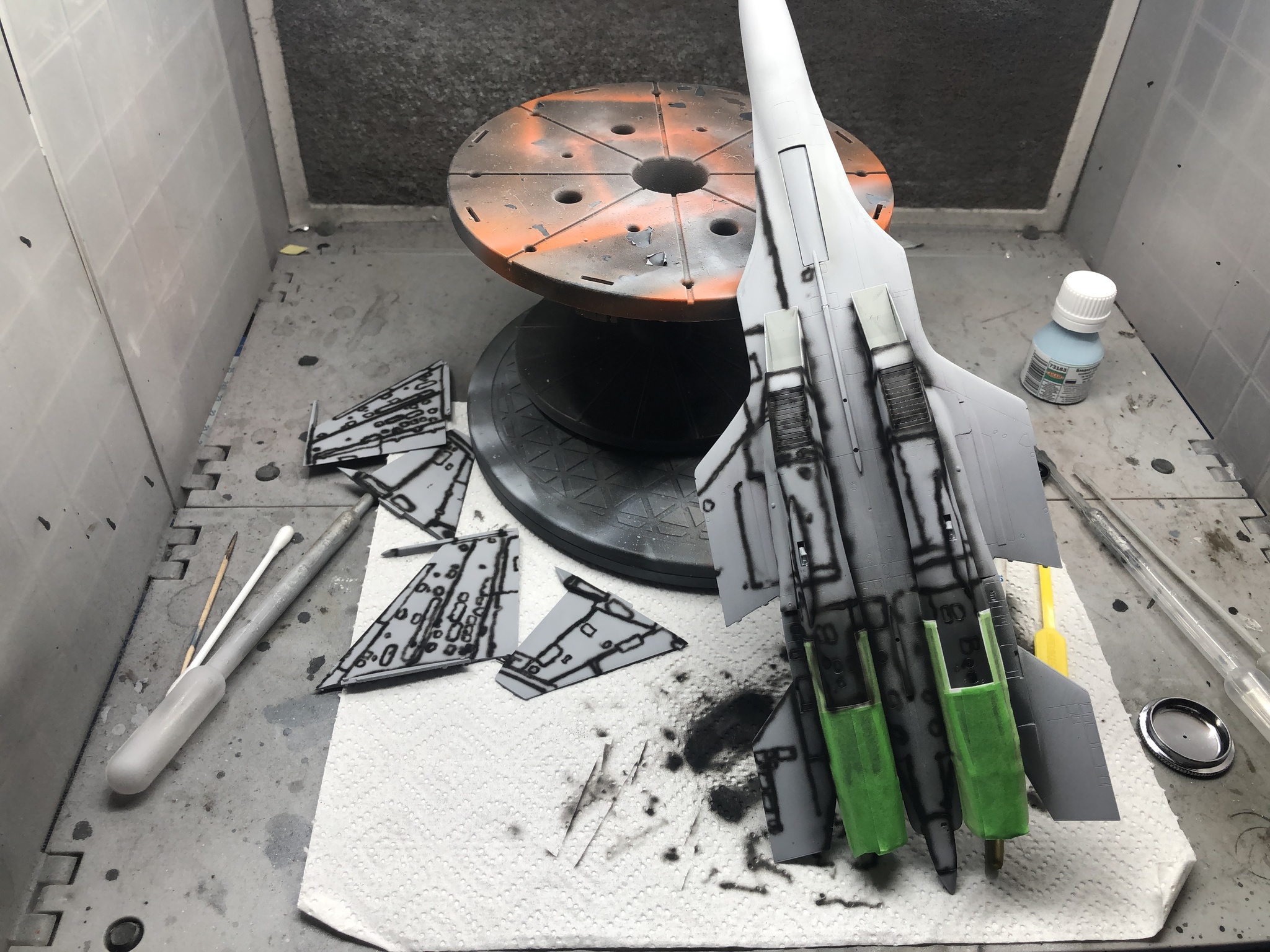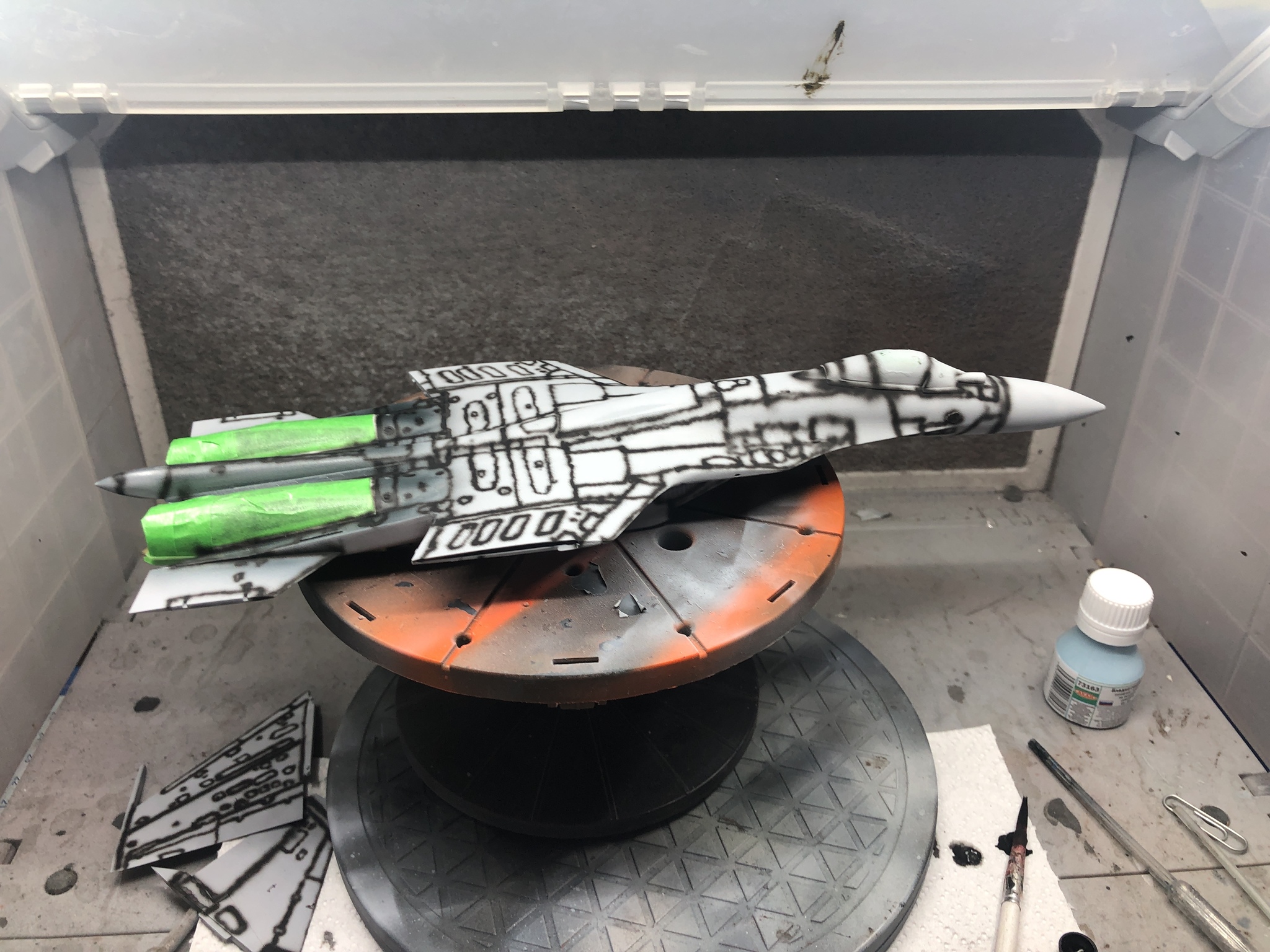 Самое большое проклятье – это покраска ракет. Делал в два захода, сперва металлик, маскировал стабилизаторы и красил в белый.