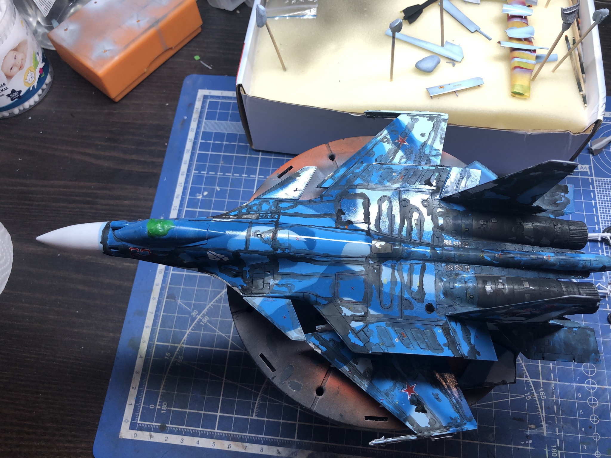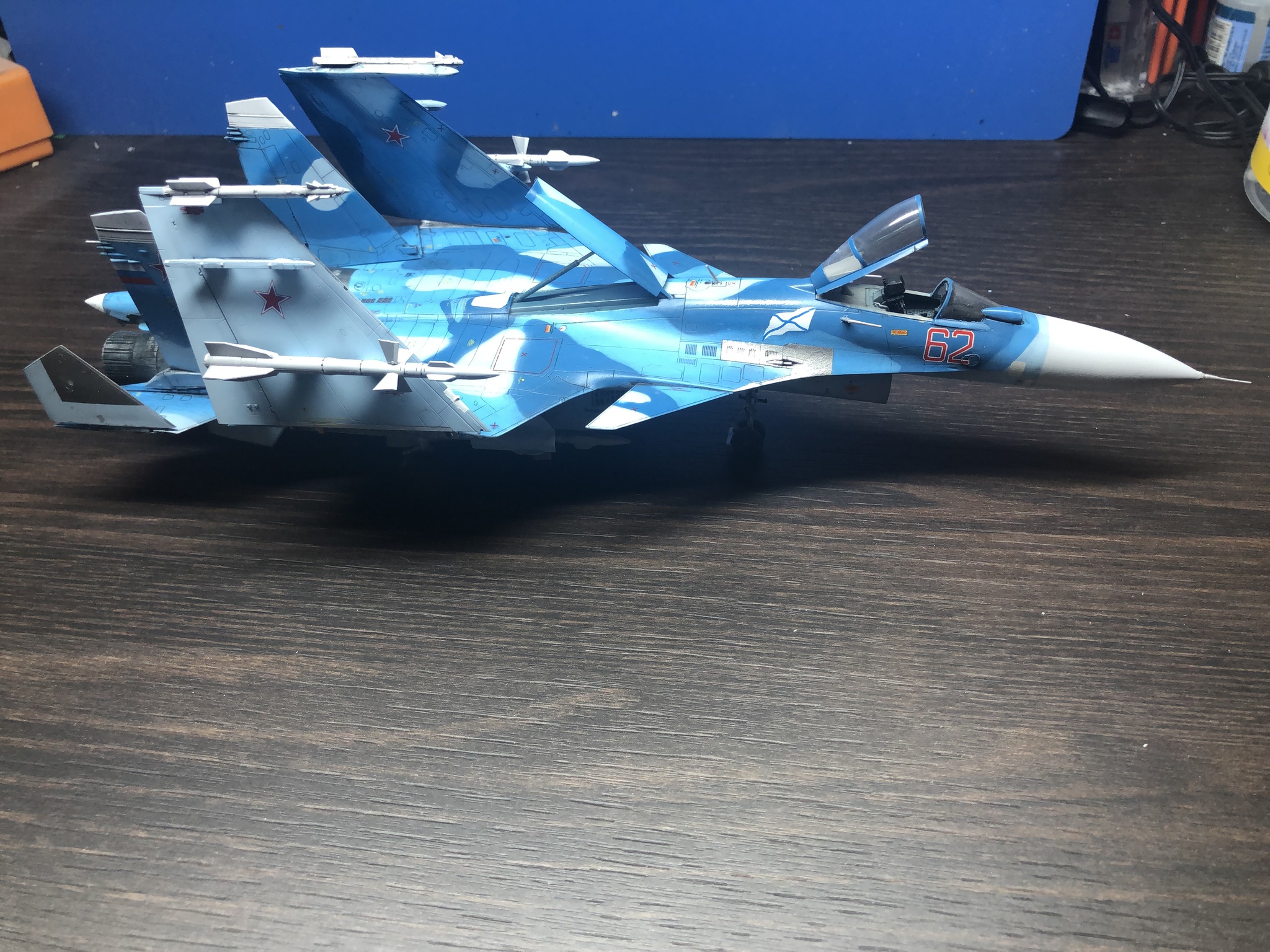 Ну и еще денек ушёл на сборку и подкраску мелочевки. Несмотря на кучу недочетов и косяков, результат вышел приемлемым. Но к современной российской авиации я вернусь еще не скоро.