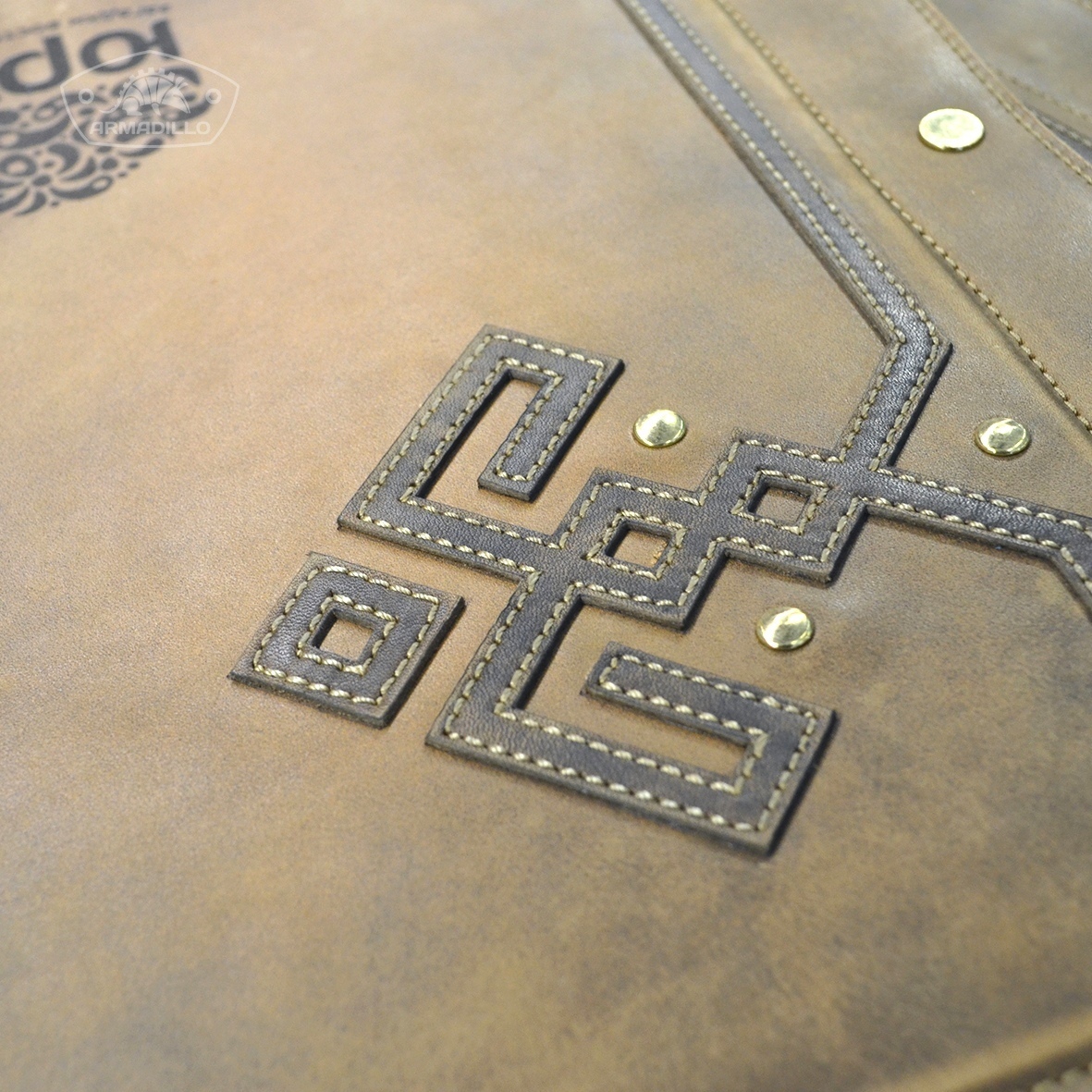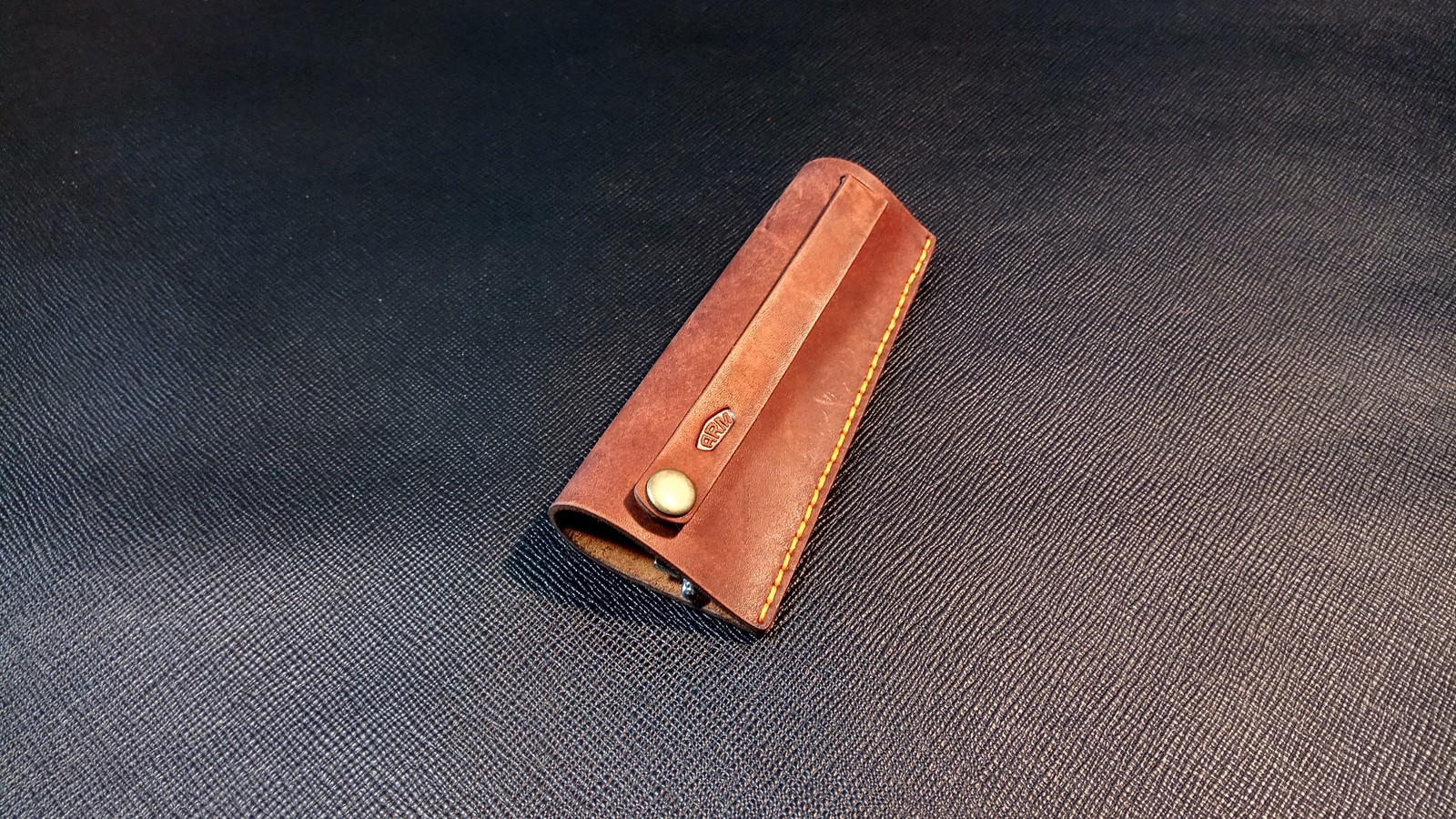 Материалы кожа 2.5 мм, нитка плоская 0.5мм фурнитура китай. Разметка на коже лазерная, пробойник строчный круглый, шаг 5 мм, толщина 1 мм. С одной застёжкой забирались бы края клапана