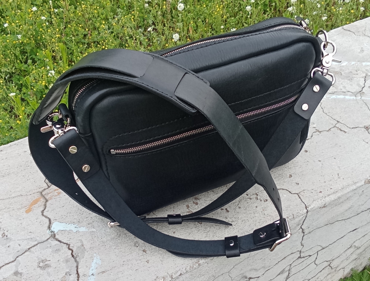Сумка из краста в толщине 2,0-2,2 мм., кожа обработана восковым составом для защиты от влаги и придания матового блеска.