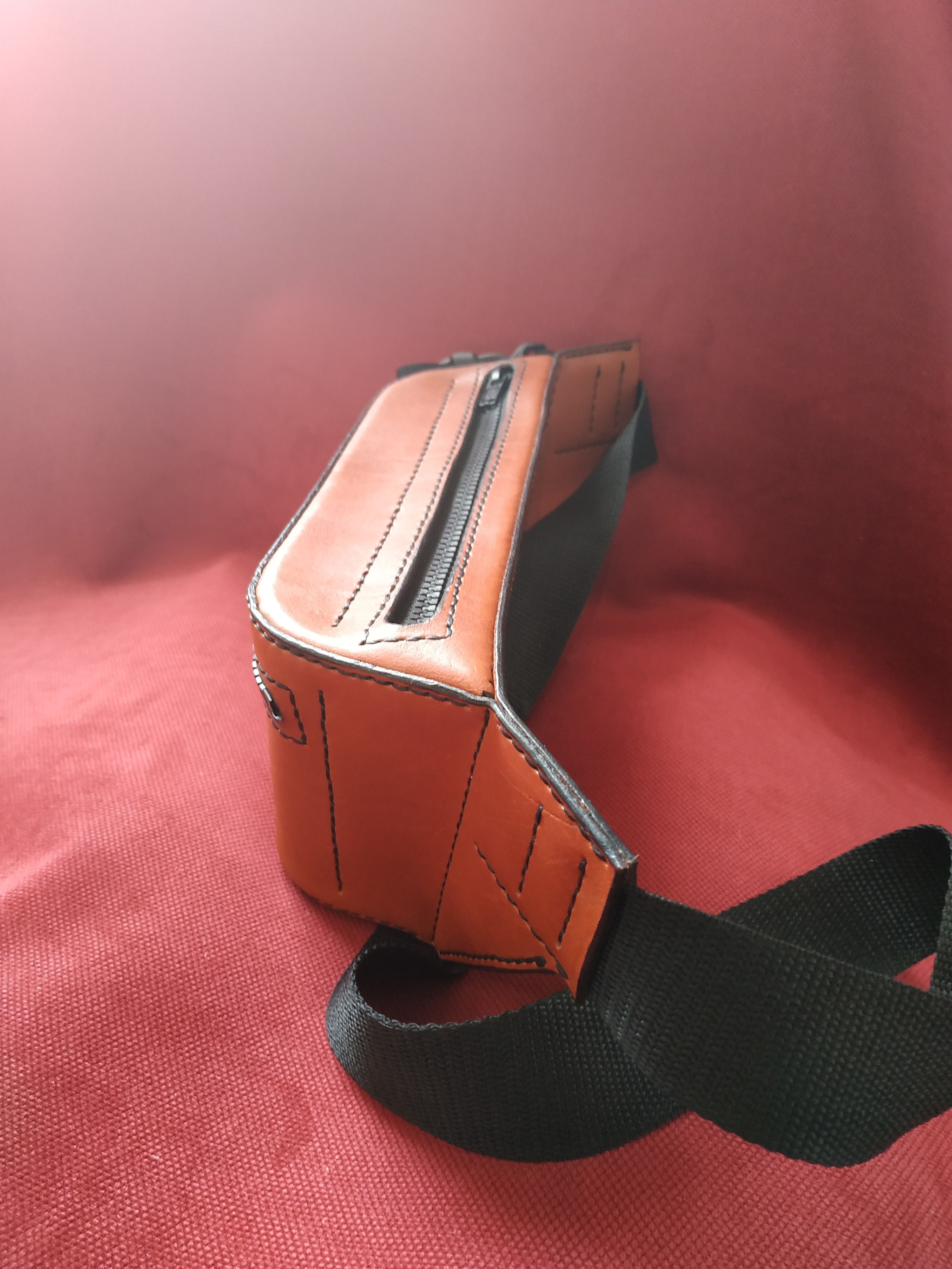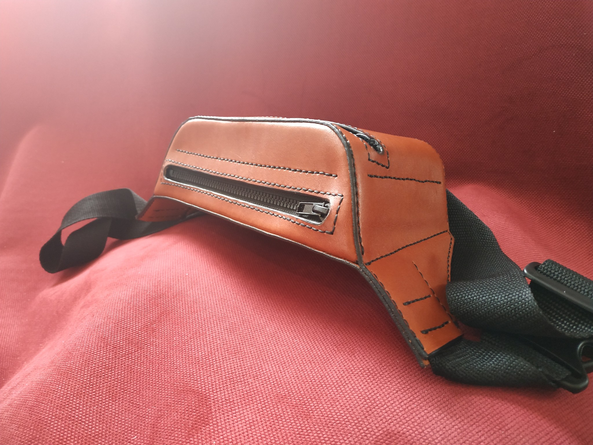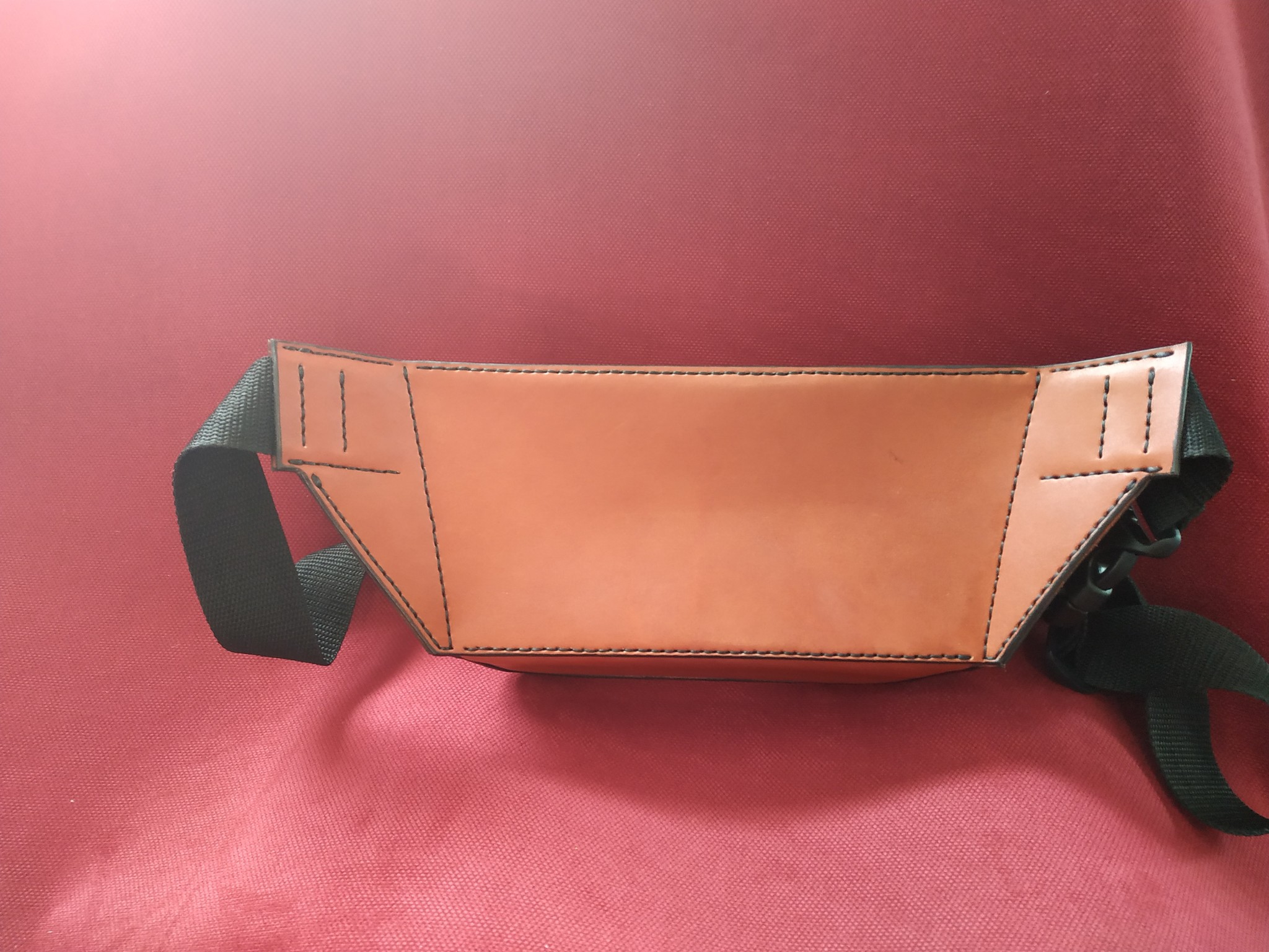 Сумка из остатков кожи от прошлого рюкзака по выкройкам Сержа Никитина. Есть люди у которых с первого раза получается вшить молнию ровно? У меня и со второго не получилось. Поделитесь опытом, пожалуйста.