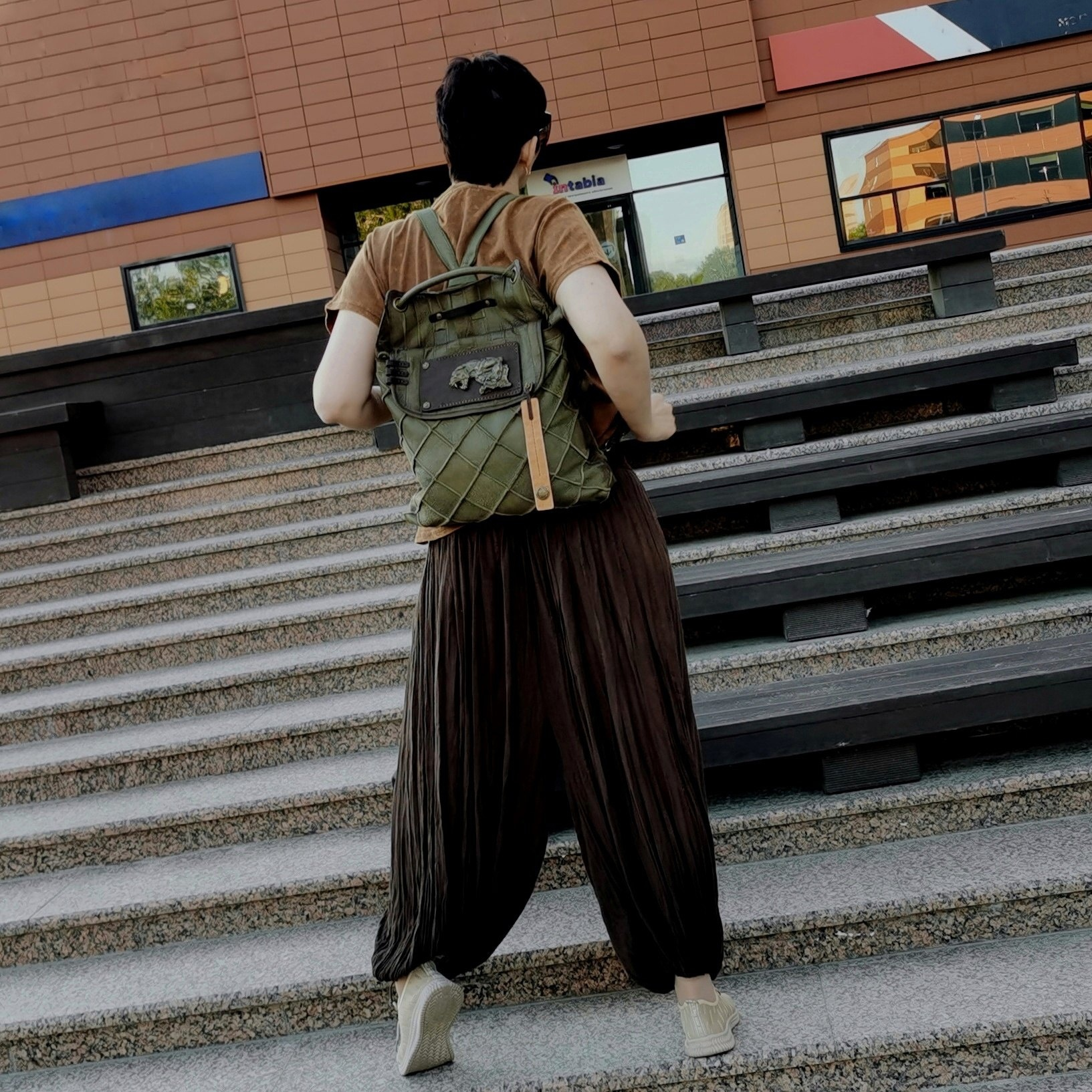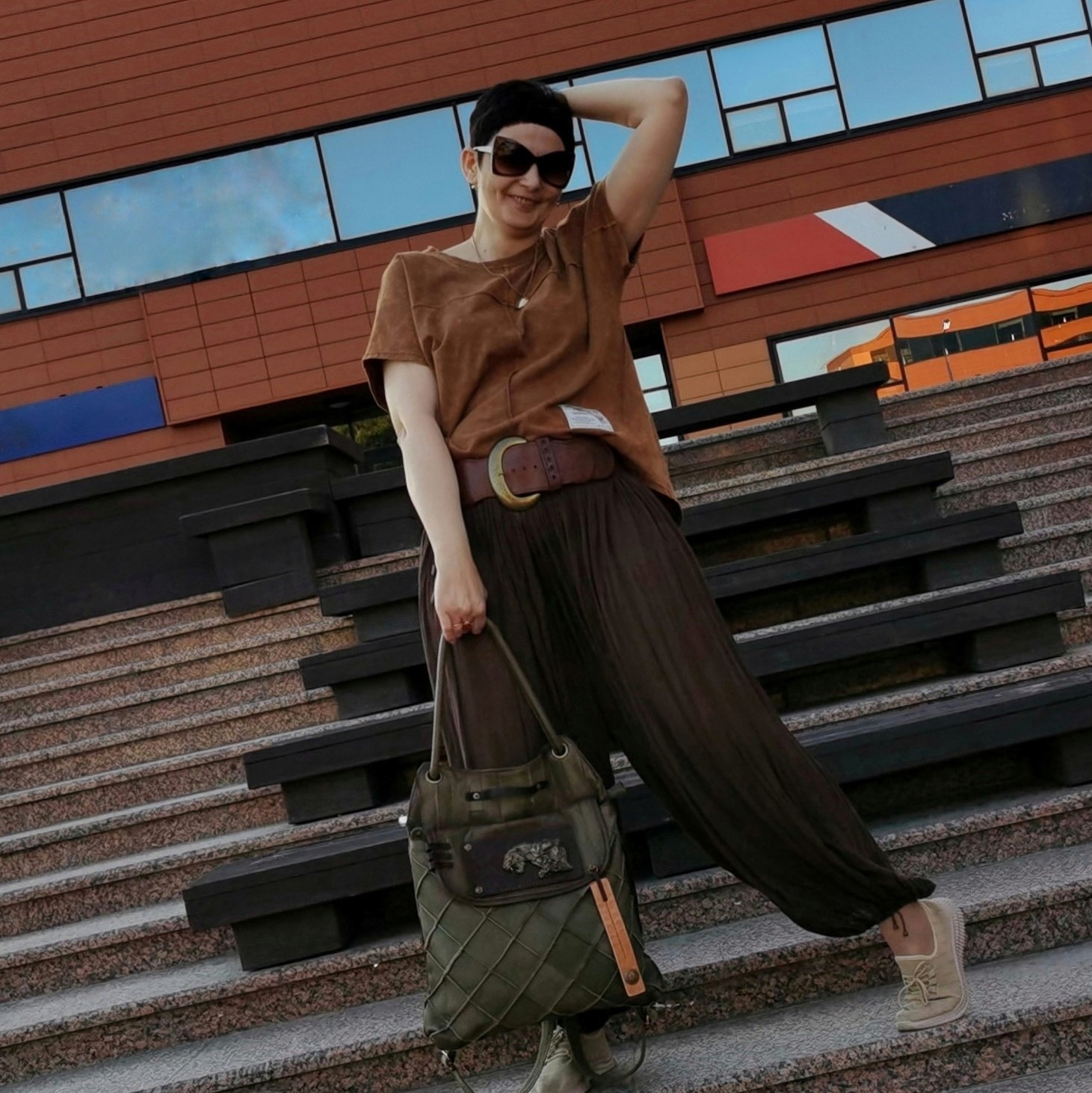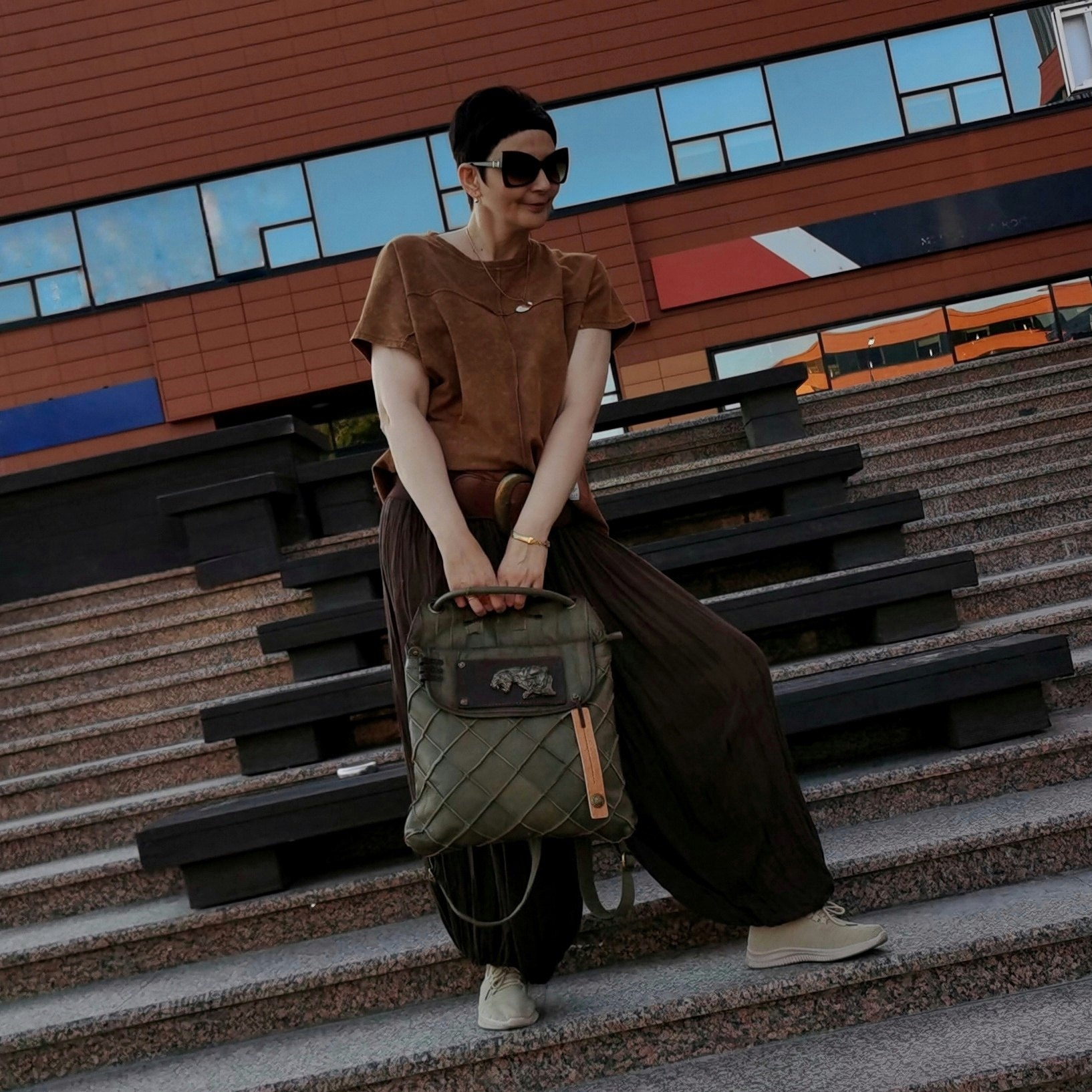 А так-то, очень тактильная вещь. Мягкая кожа приятного цвета не выколи глаз. Чуть дымная, чуть пыльная – вкрадчивая. Хорошие пропорции. Всё чётко и понятно. Привлекает внимание. При этом не вызывает однозначно городских или природных ассоциаций. Не требует определённой формы одежды, возраста и типажа.