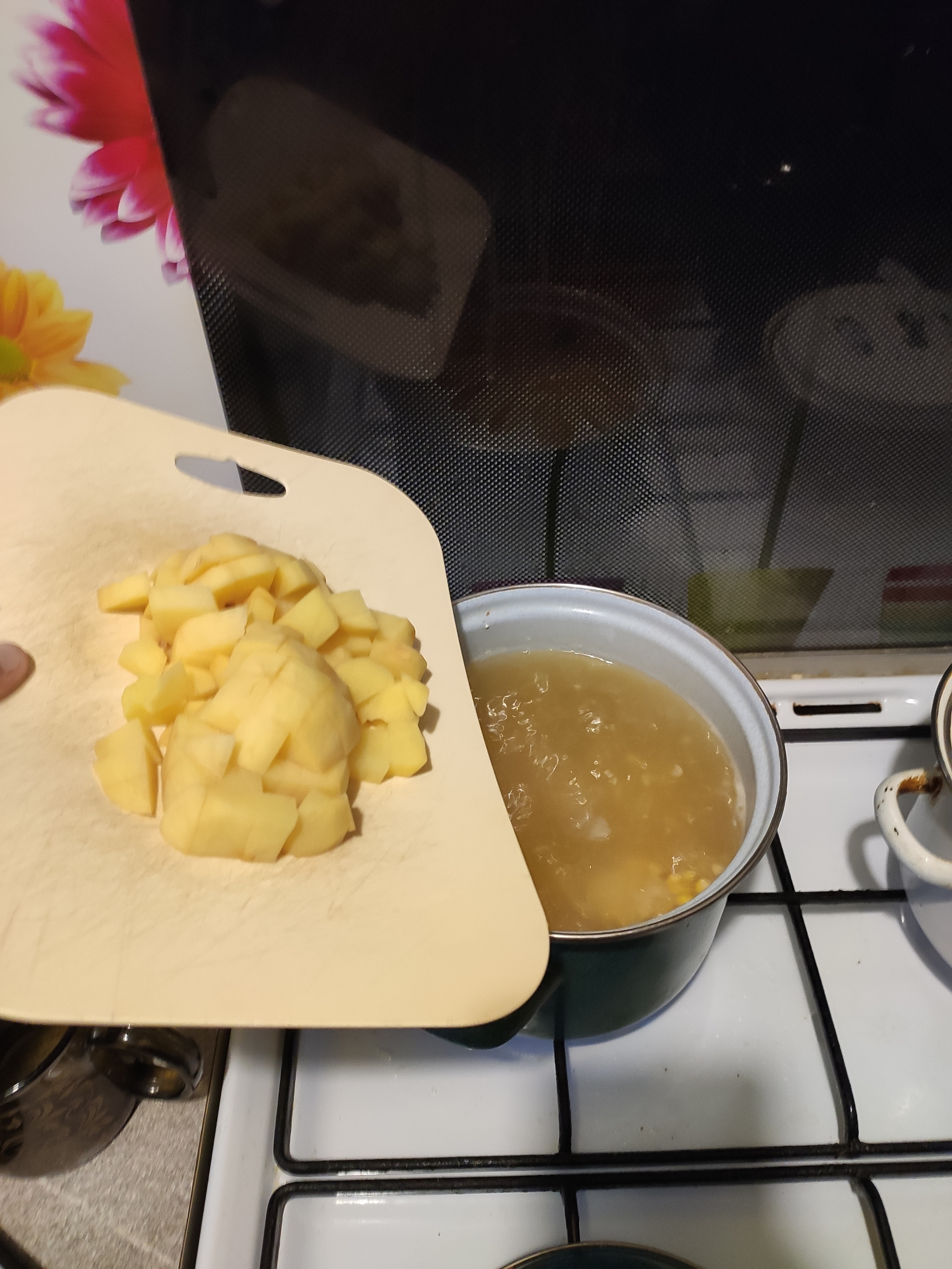 и в кастрюлю с супом. Суп к этому времени становится таким (время 17:38):