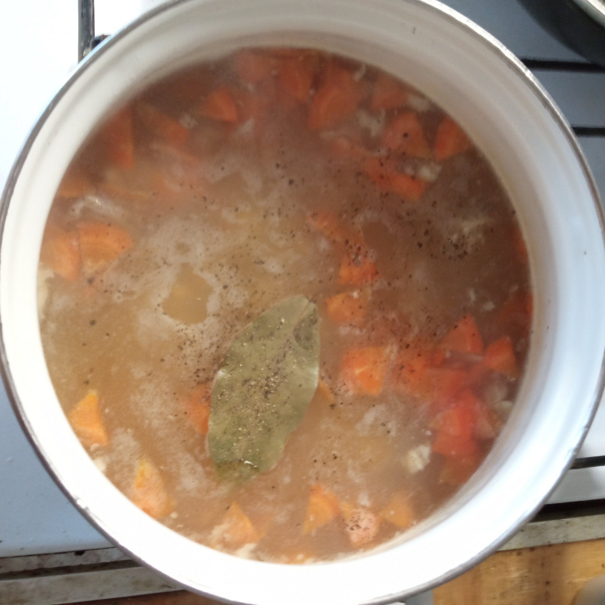 У нас для навара голяшки, для супа бедра, поэтому я поступлю следующим образом - варю час, потом удаляю овощи - свои полезные вещества они отдали.