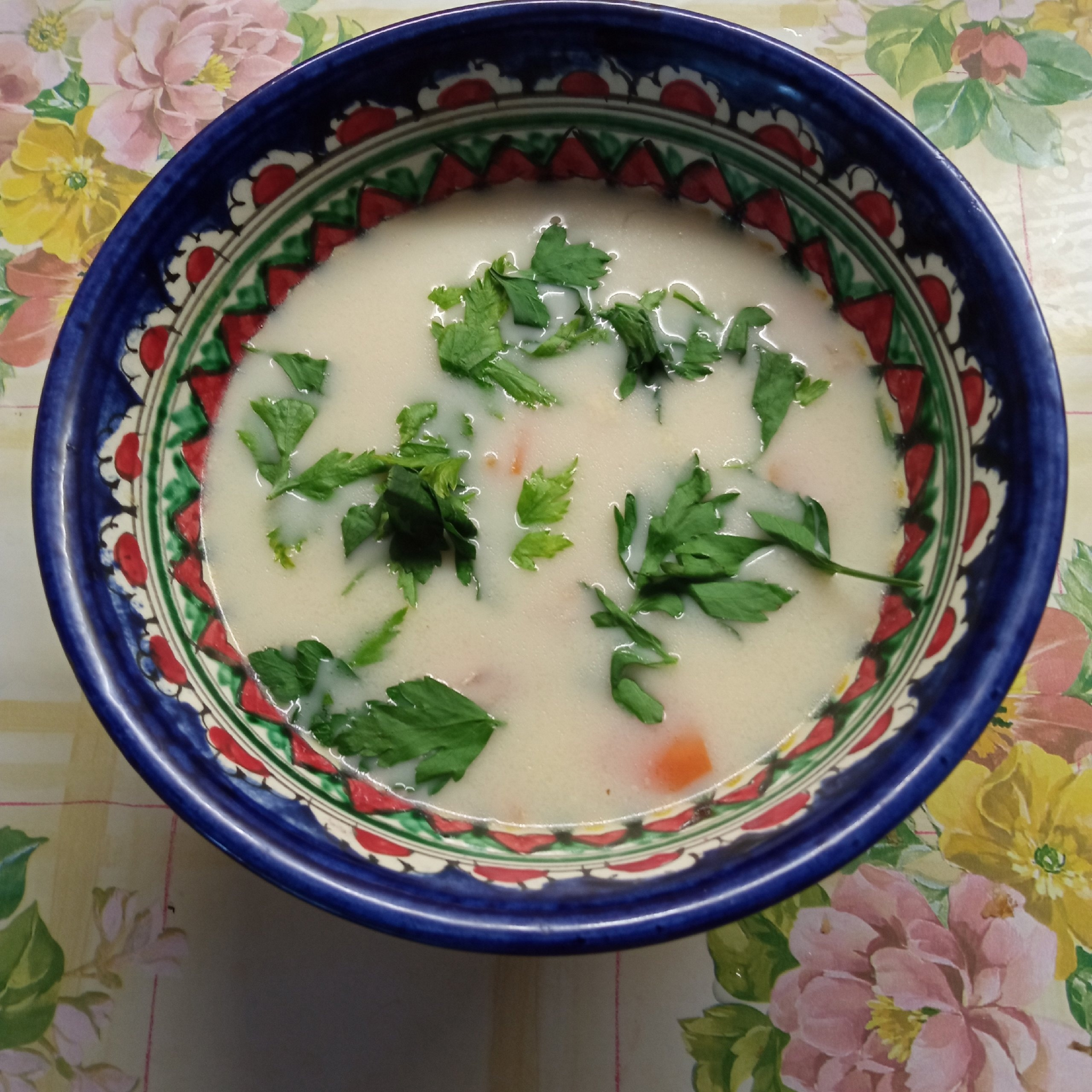 Суп на курином бульоне с чечевицей и сливками