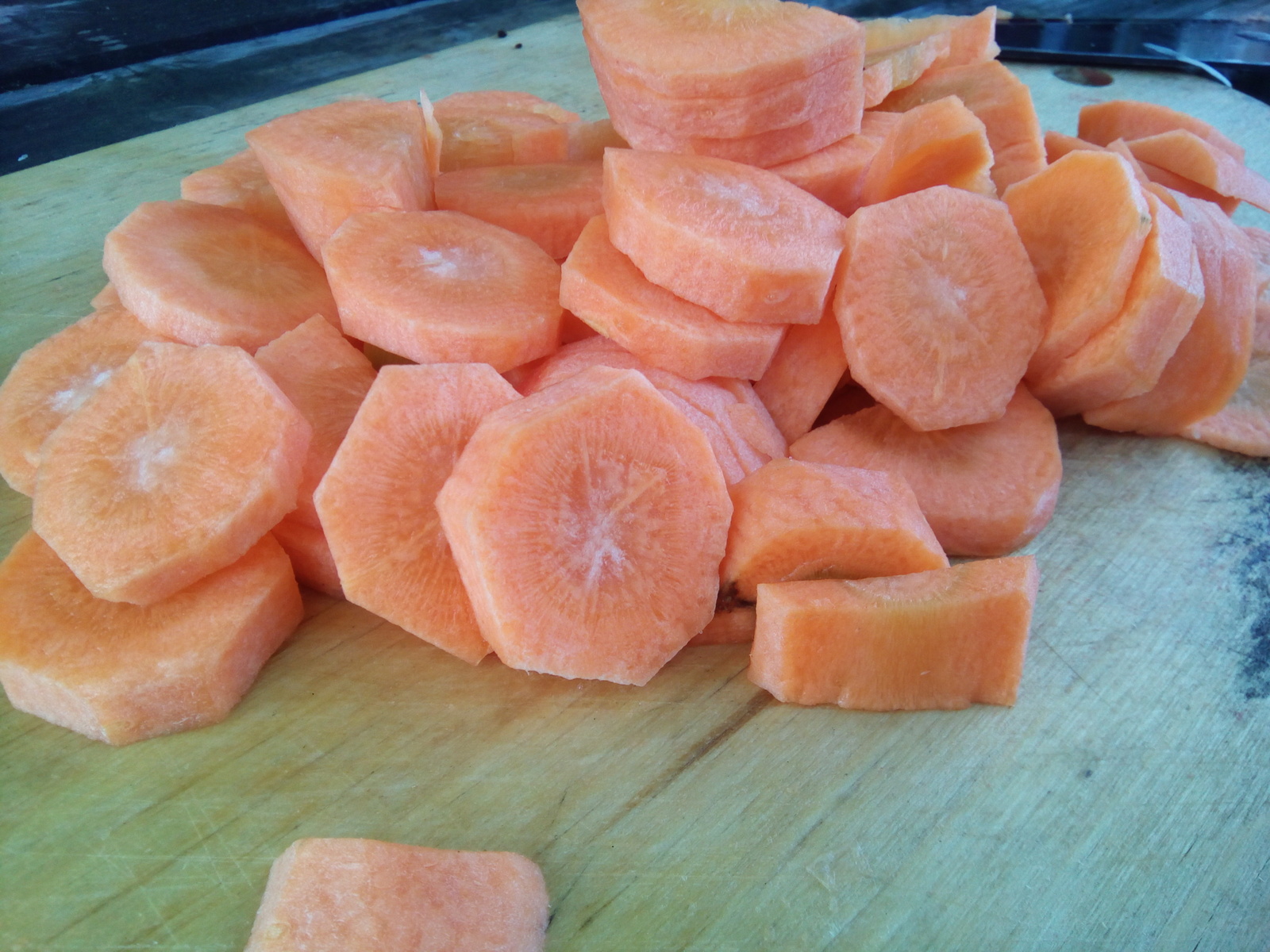 Вот так будет достаточно. Убираем пока курицу в сторону. И начнем готовить овощи.