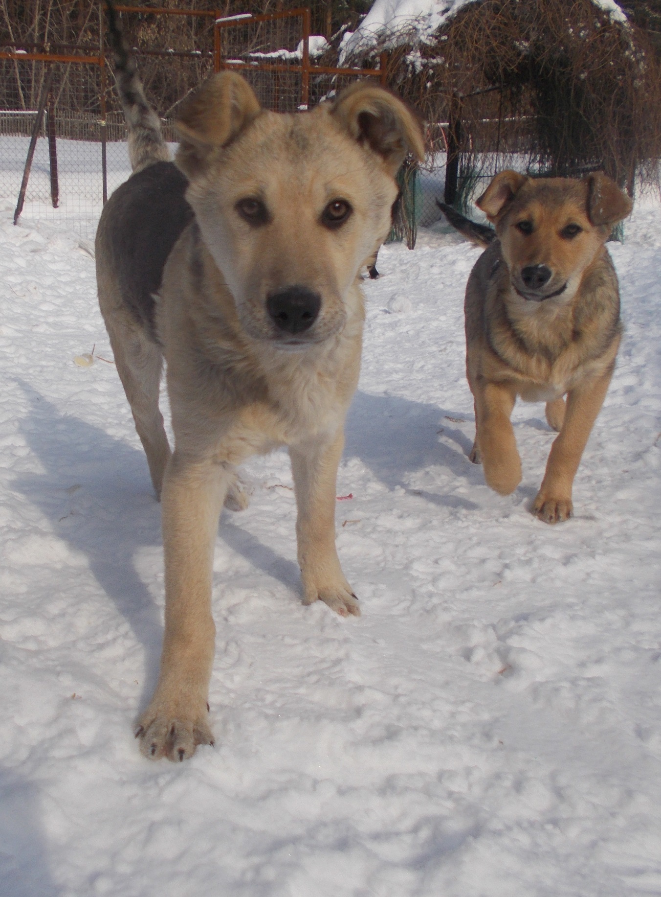 Винт и Иртыш. Крупные, веселые, здоровые, уже охраняют. Около четырех месяцев, кастрированы, привиты.