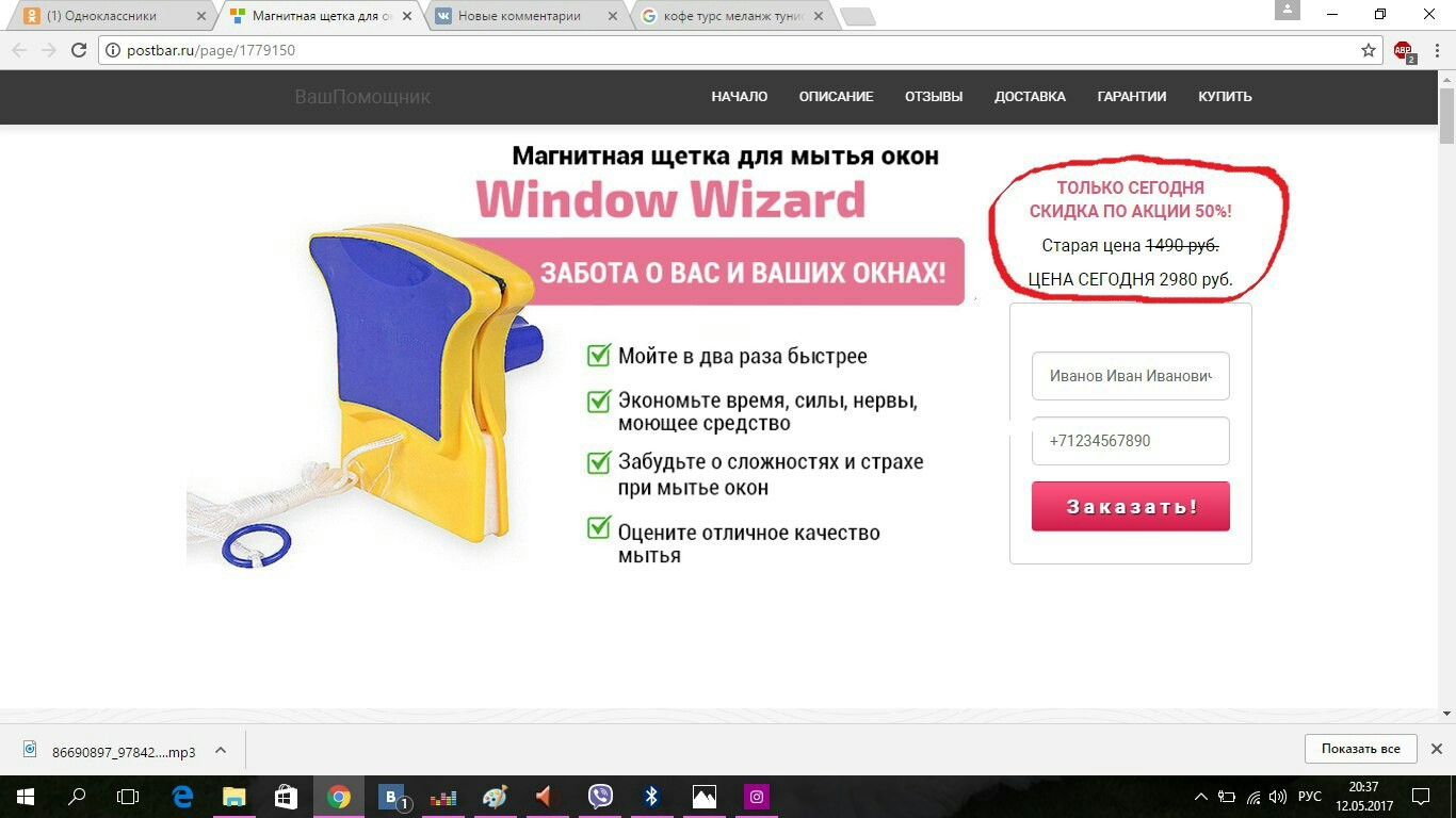 Давно в соц сетях мелькает реклама чудо-щетки для мытья окон. Решила я все-таки посмотреть, сколько сие чудо стоит. А у них там "бешеные" скидки!