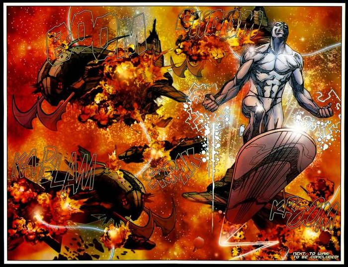 Космический привет всем, кто это читает. Вангую, что вам в жизни не хватает серебристых инопланетян на досках для сёрфинга. Что ж, придётся это исправлять. Сегодня я расскажу пикабушникам, пикабушницам и пикабушатам о способностях Серебряного Сёрфера! Биографию его я уже давненько описывал, с тех пор в ней новых событий накопилось. Но основные вехи его истории всё-таки описаны. Ах да, материалы в этом посте могут противоречить законам физики, логики, здравого смысла и друг другу, а также оскорблять чувства любителей реализма, которых мне ни вот на столько не жалко.