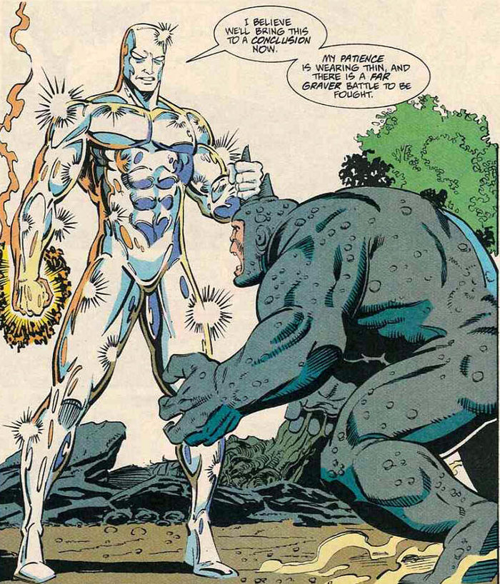 Нормальные сёрферы ловят волны в море. Серебряный Сёрфер удовольствия ради пролетает через звёзды (хороший способ очиститься, если на планете чем-нибудь заляпался) и сёрфит на взрывных волнах от взрывов сверхновых. Жар поверхности звезды ему нипочём, как и внушительная гравитация. Понятное дело, всякие огнемёты да лазеры против него – тоже гиблый номер.