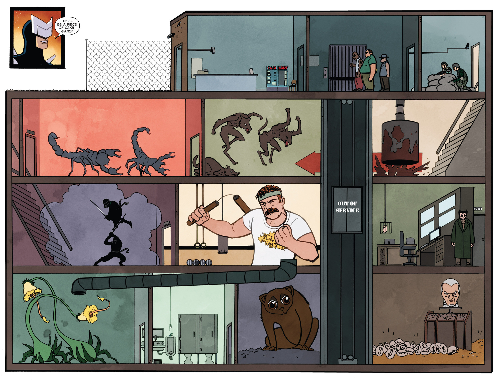 Настроение у комикса солнечное и юморное, хоть и героям (злодеям?) постоянно угрожает опасность от еще больших злодеев чем они. Но комикс не такой смешной как, наверное, хотелось бы. Тогда он стал бы совсем вообще шедевром на все времена, но в своем 2013м тоже наделал не мало шуму (да я вообще сильно сомневаюсь, что вы про комикс ничего не слышали).