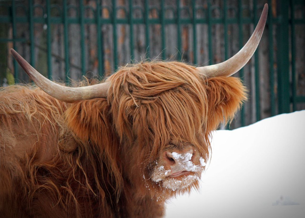 Длинная, свисающая на лоб чёлка дана шотландкой корове хайленд неспроста. У неё несколько функций: чёлка бережет глаза от инфекции, разносчиками которых могут быть насекомые, а также защищает животных от снега и дождя.