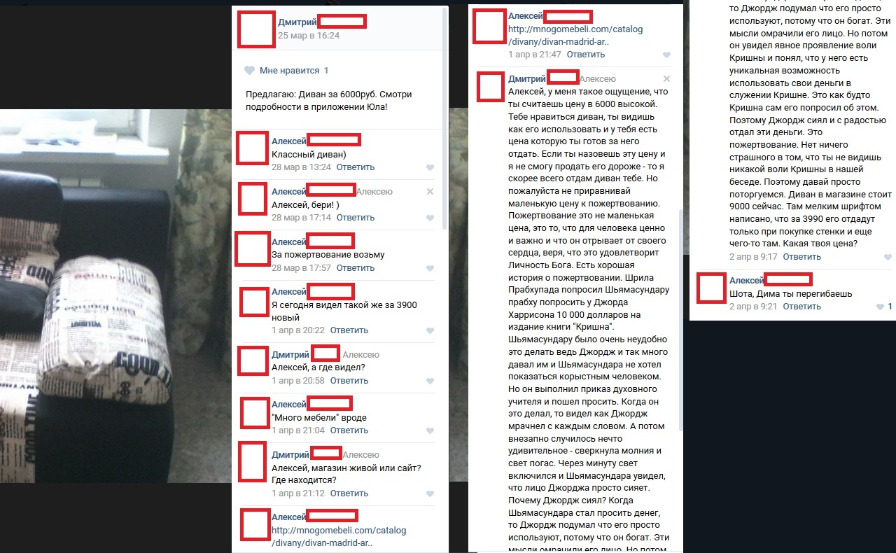 4 salosimosi Суровый кришнаитский маркетинг 8 лет назад [моё] Кришнаиты Диван Объявление ВКонтакте НЛП