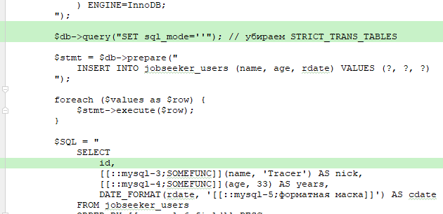 Для верности задания явный сброс STRICT_TRANS_TABLES) И как писал в другом комменте, добавил явный вывод id и его знанения в тело assert, так точно будет исключен тип INT.
