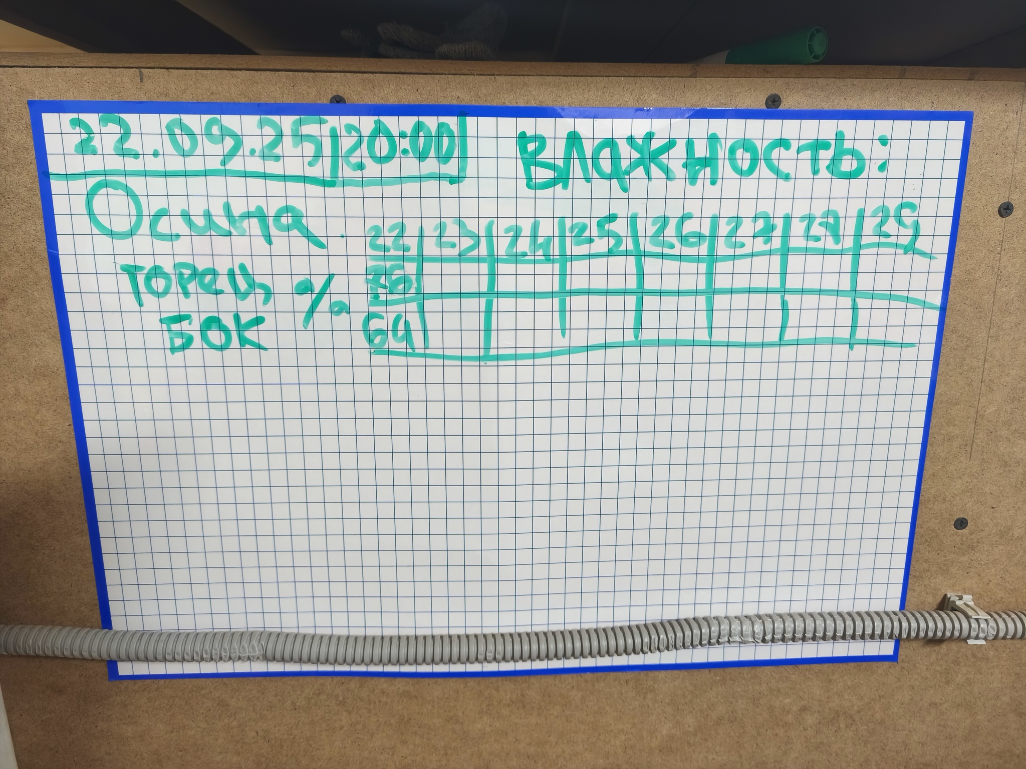 Полешки запечатаны и упакованы в камеру 22.09.25 в 20.00 . Теперь каждый день я буду открывать камеру и смотреть, как они себя чувствуют и как ведёт себя влажность.