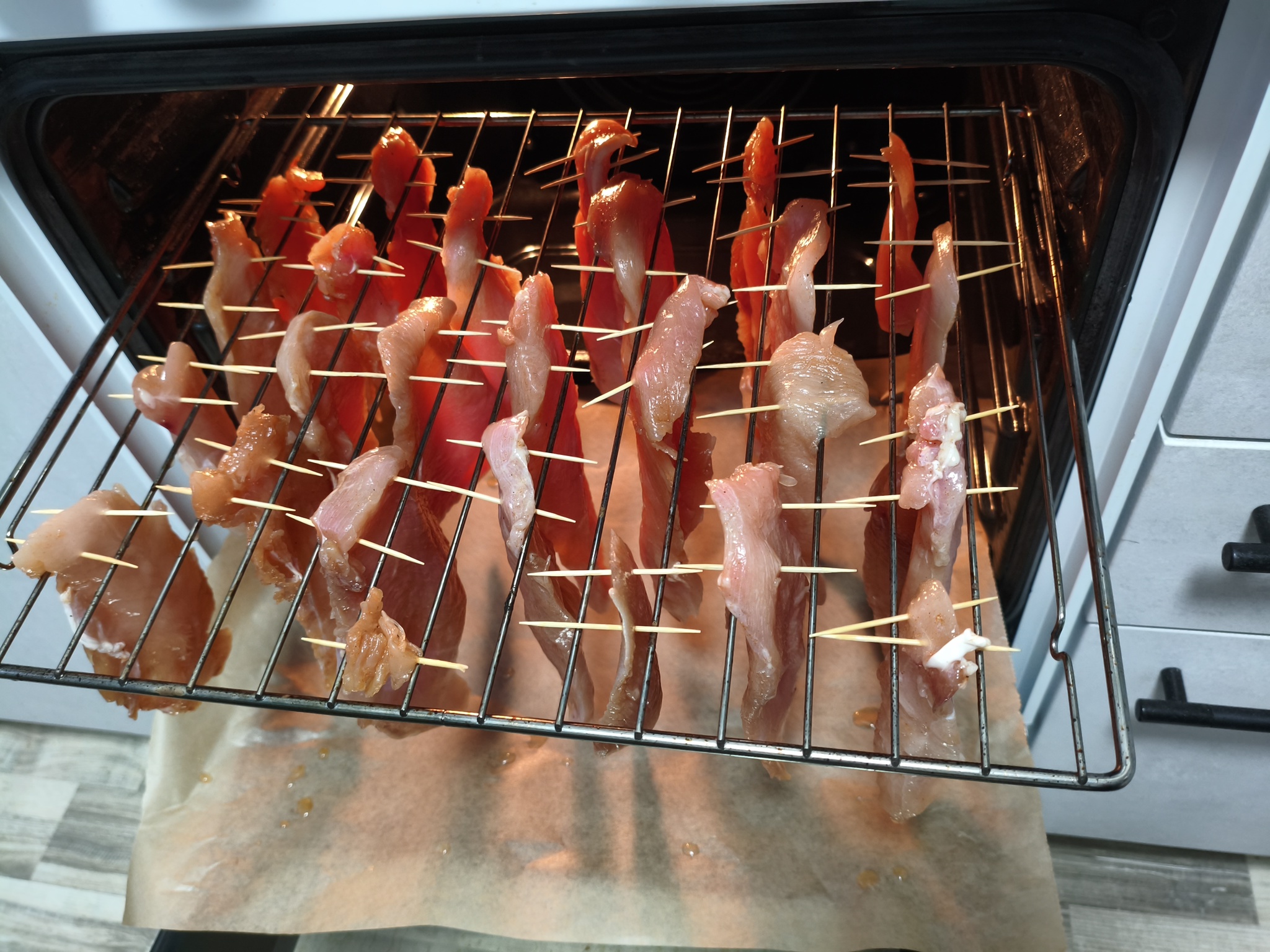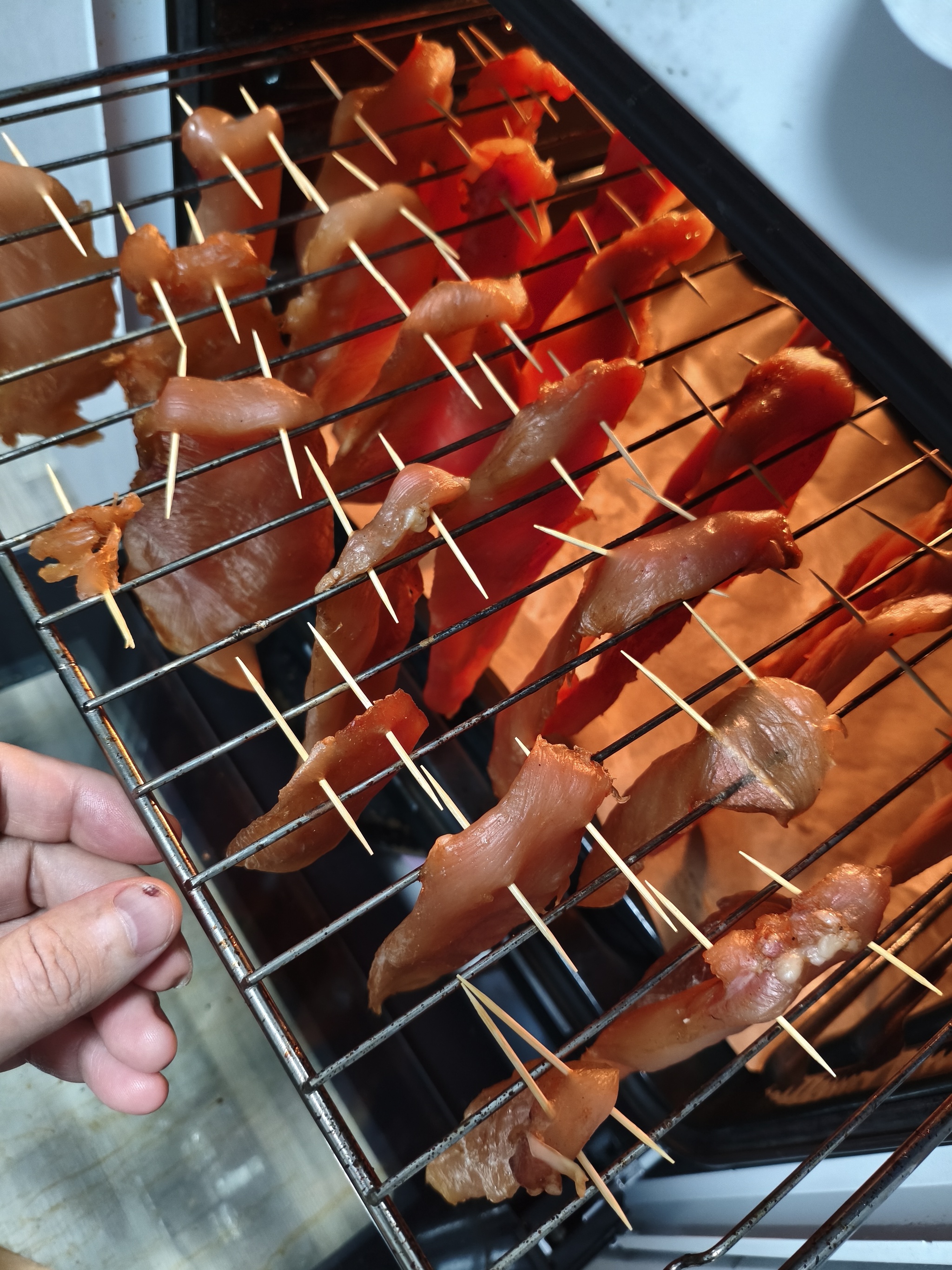Промытое мясо на 2х зубочистках подвешиваем на решетку в духовном шкафу.